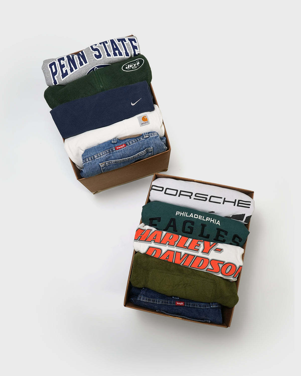 1) Each box can have a mix of authentic vintage and/or modern pre-owned apparel.