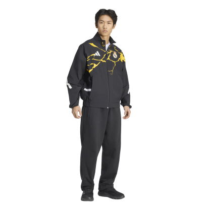 The adidas Real Madrid Avengers Z.N.E. Anthem Jackets for men offer a perfect blend of style and fandom. With a loose fit and woven construction, these jackets provide comfort and flexibility. The matte rubber prints and tech-inspired drawcords add a unique touch, celebrating the unity of Real Madrid and the All Blacks. Marvel's collaboration brings a comic-inspired design, uniting these iconic teams.