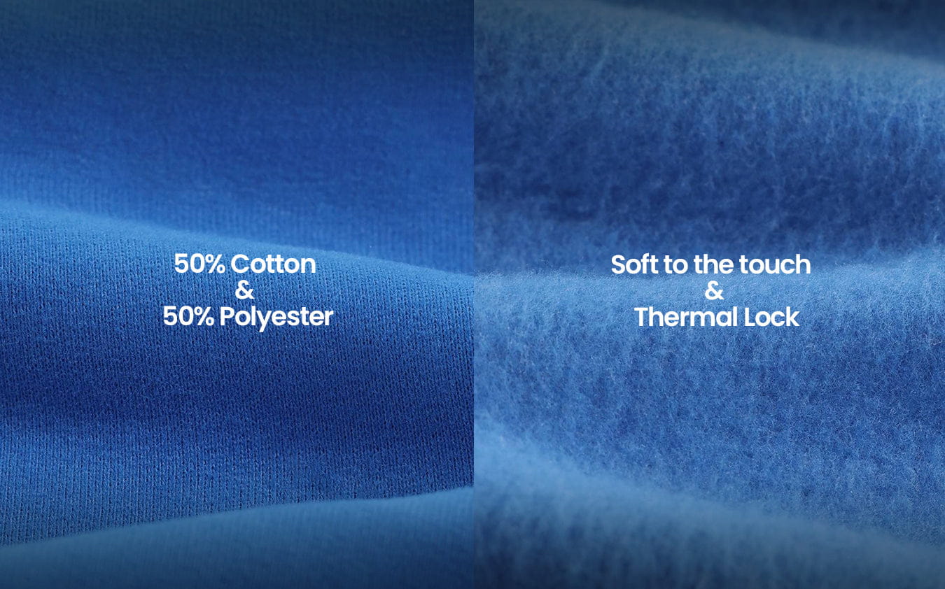 Crafted from a premium cotton-poly fleece blend, it brings warmth without the weight. Smooth to the touch, refined in structure, effortless in wear. The result is balance made tangible.