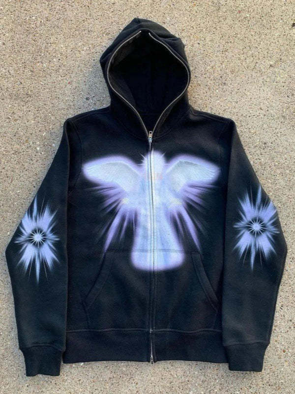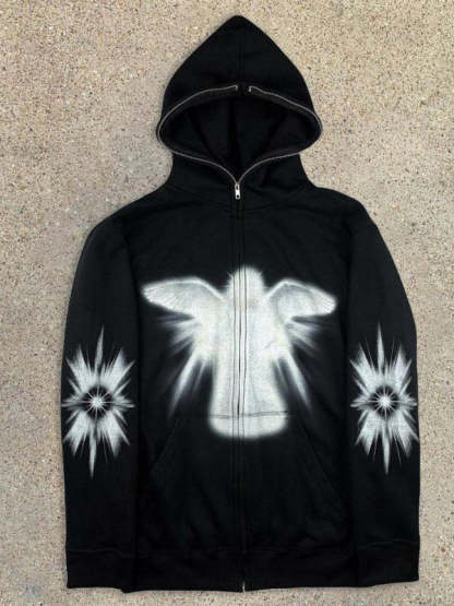 Angel 3D Print Zip-up Long Sleeve Hoodie