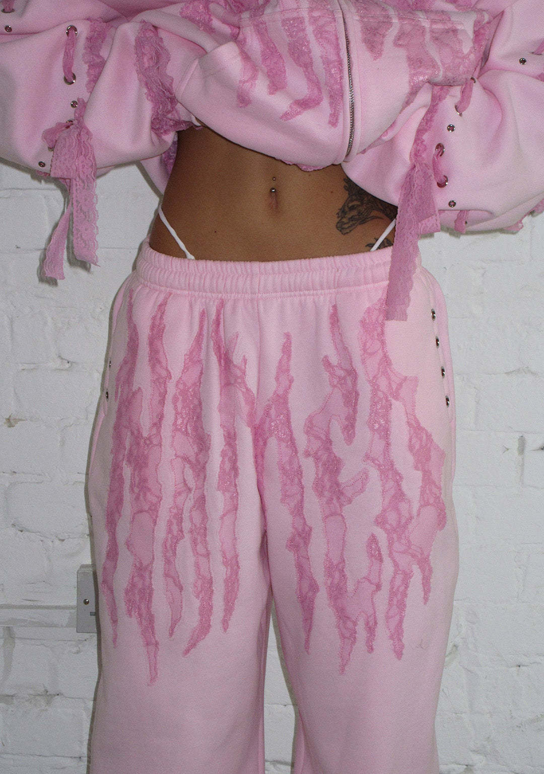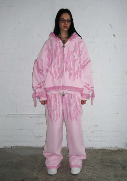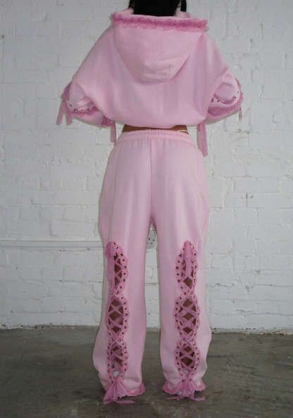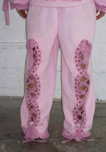BAD ROMANCE LACE RIBBON OVERSIZED SWEATPANTS BABY PINK