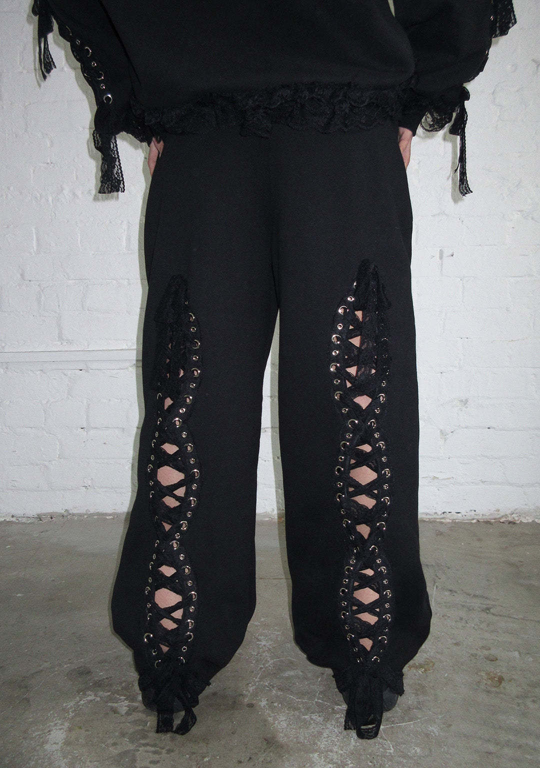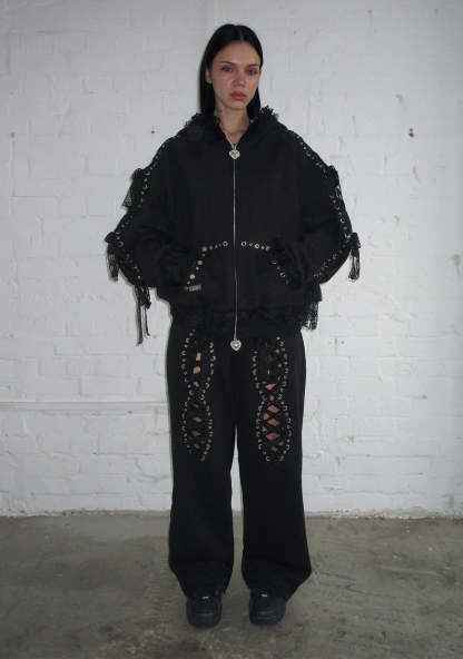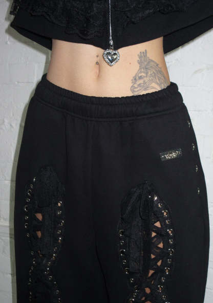 BAD ROMANCE LACE RIBBON OVERSIZED SWEATPANTS BLACK