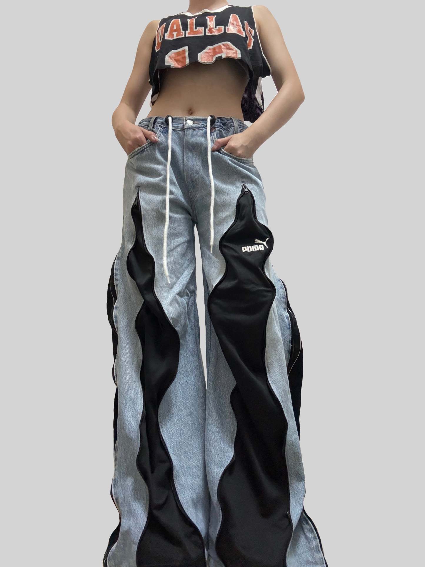 🔹Length: 42”Remade from sport brands sweatpants and Levi’s jeans👖