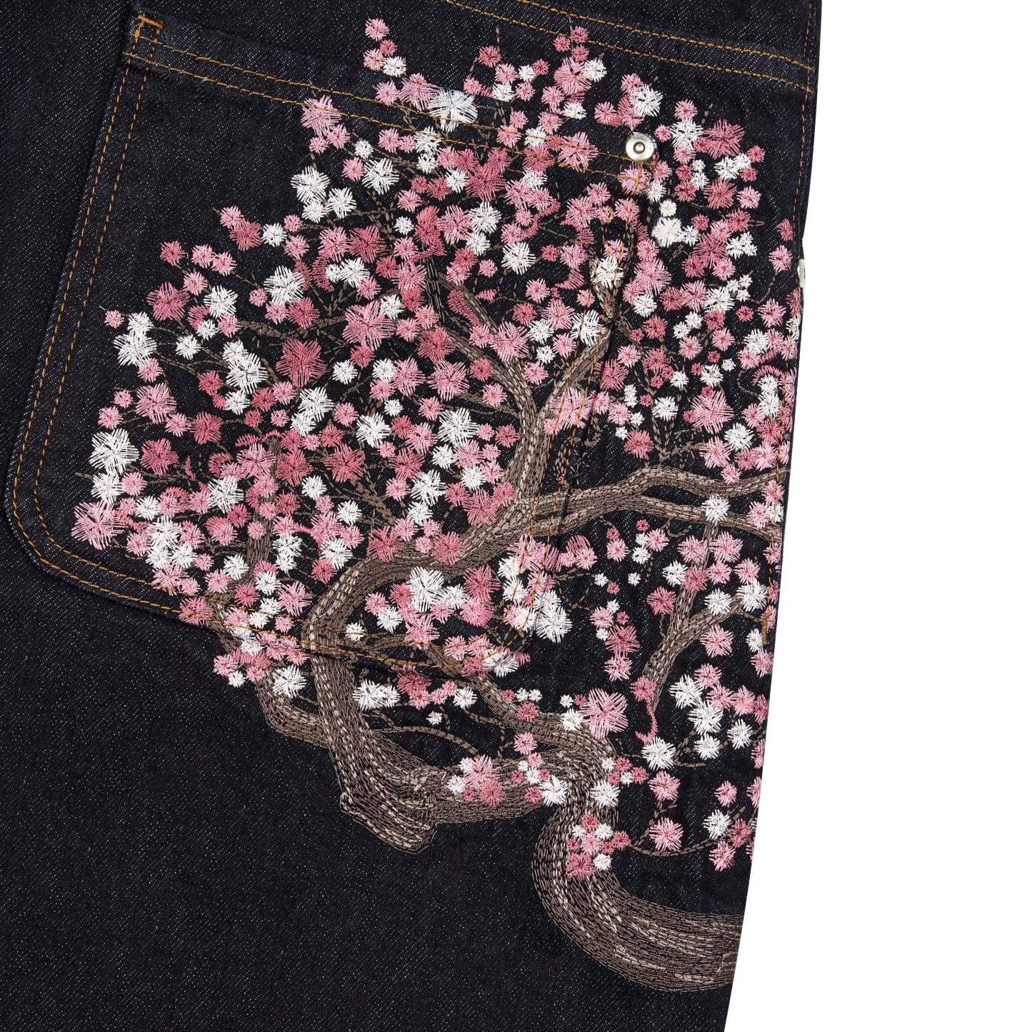 13oz selvedge denim / 100% cotton / embroidery on front and back pocket / embroidered leather patch / balloon fit (different to our usual fit) / fabric may bleed or fade, wash inside out in cold water to preserve color and character / fits true to size
