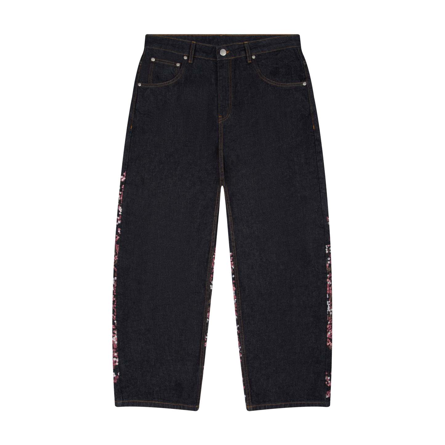 14,5oz denim / 100% cotton / embroidery on front and back / embroidered leather patch / wash inside out / straight fit / fits true to size