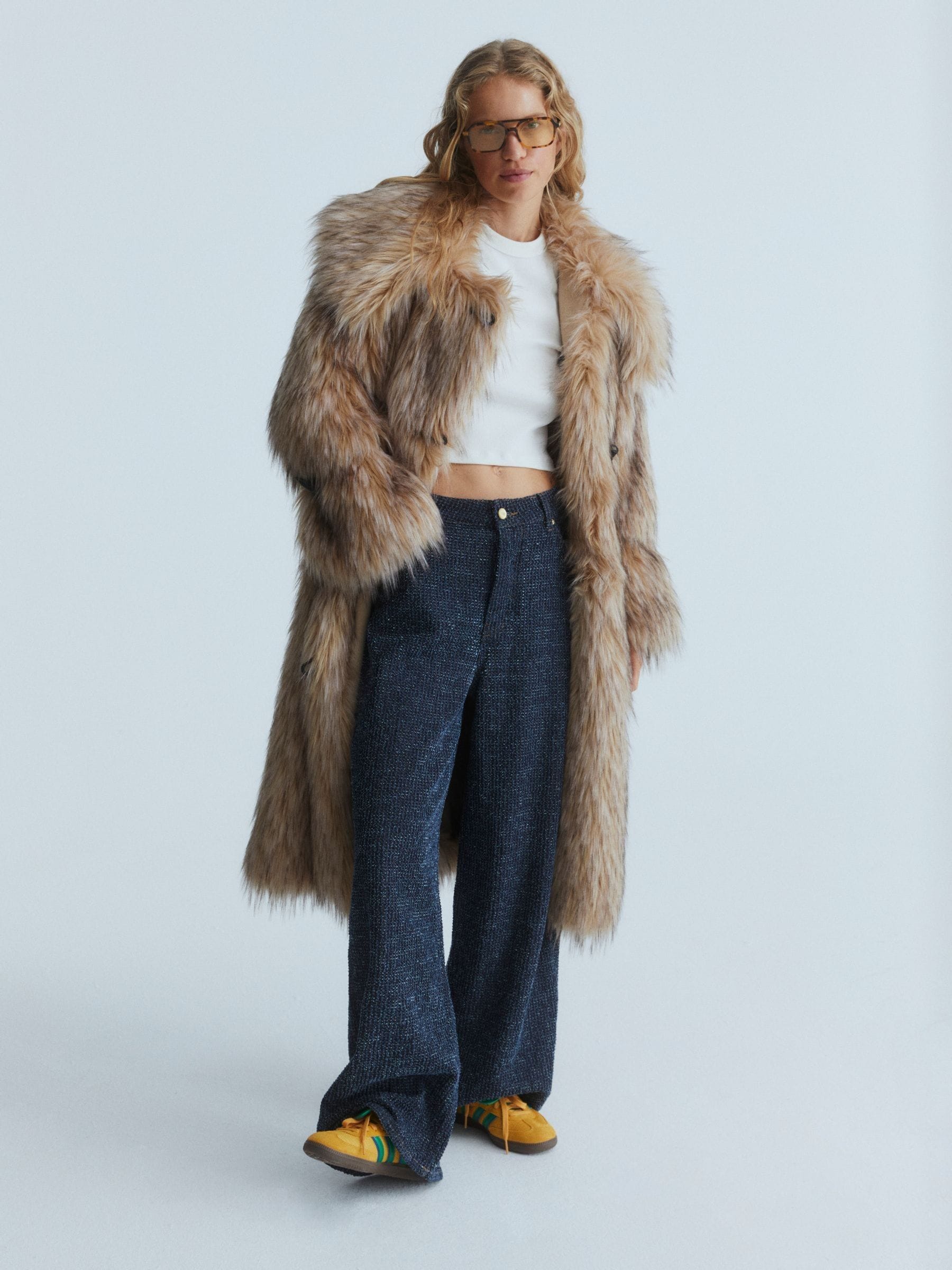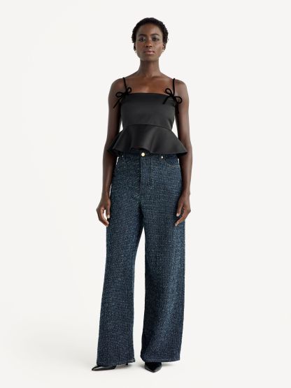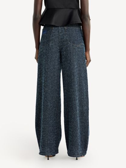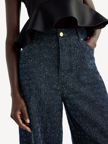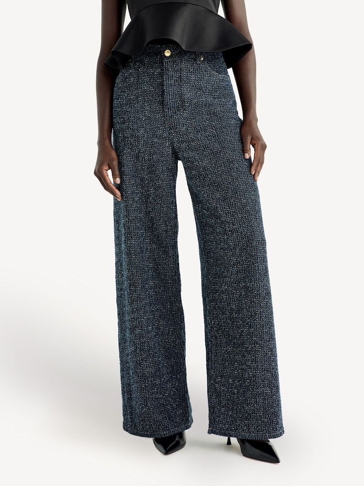 These Blue Denim Wide Jeans feature a 5-pocket style with a zip and button closure, belt loops,