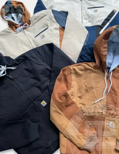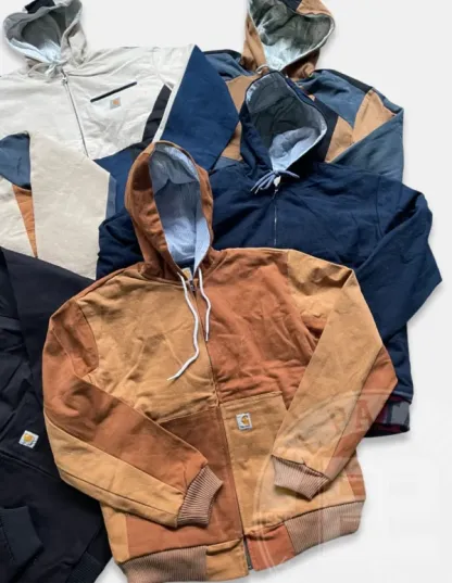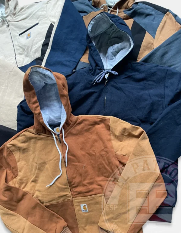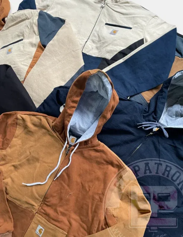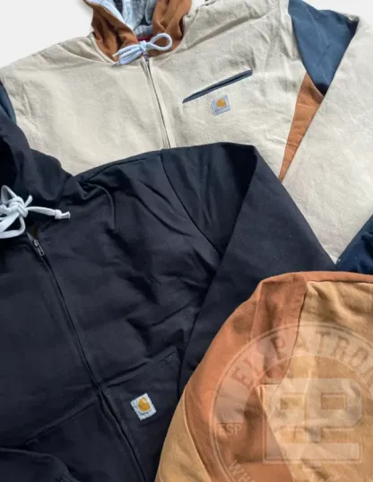Las Chaquetas Carhartt Rework son piezas únicas con historia que han sido restauradas y confeccionadas a partir de telas reutilizadas de otras prendas, creando combinaciones de colores auténticas y originales sin perder la esencia robusta de Carhartt. Modelo Active con capucha.