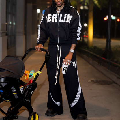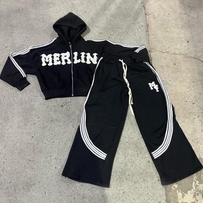 Casual Street Zip-Up Hoodie Pants Two-Piece Set