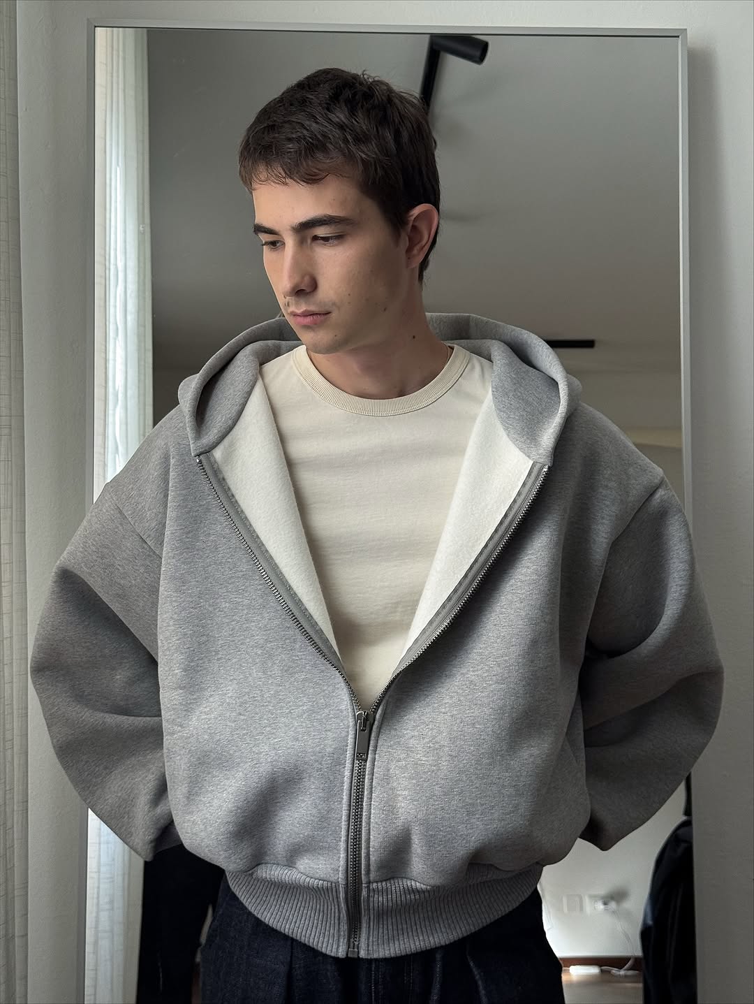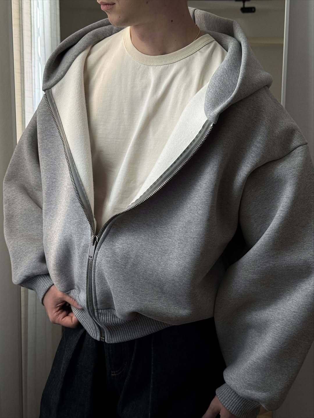 cement-colored hoodie