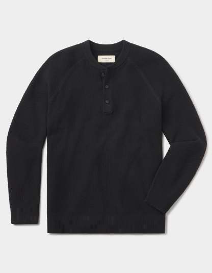 COOLMAX® Textured Sweater Henley in Black