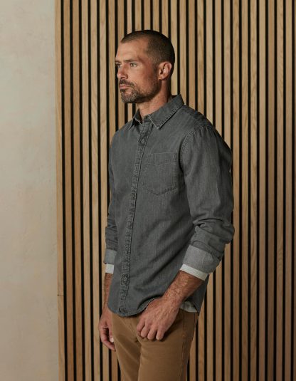 Cotton Denim Long Sleeve Button Up in Grey Wash