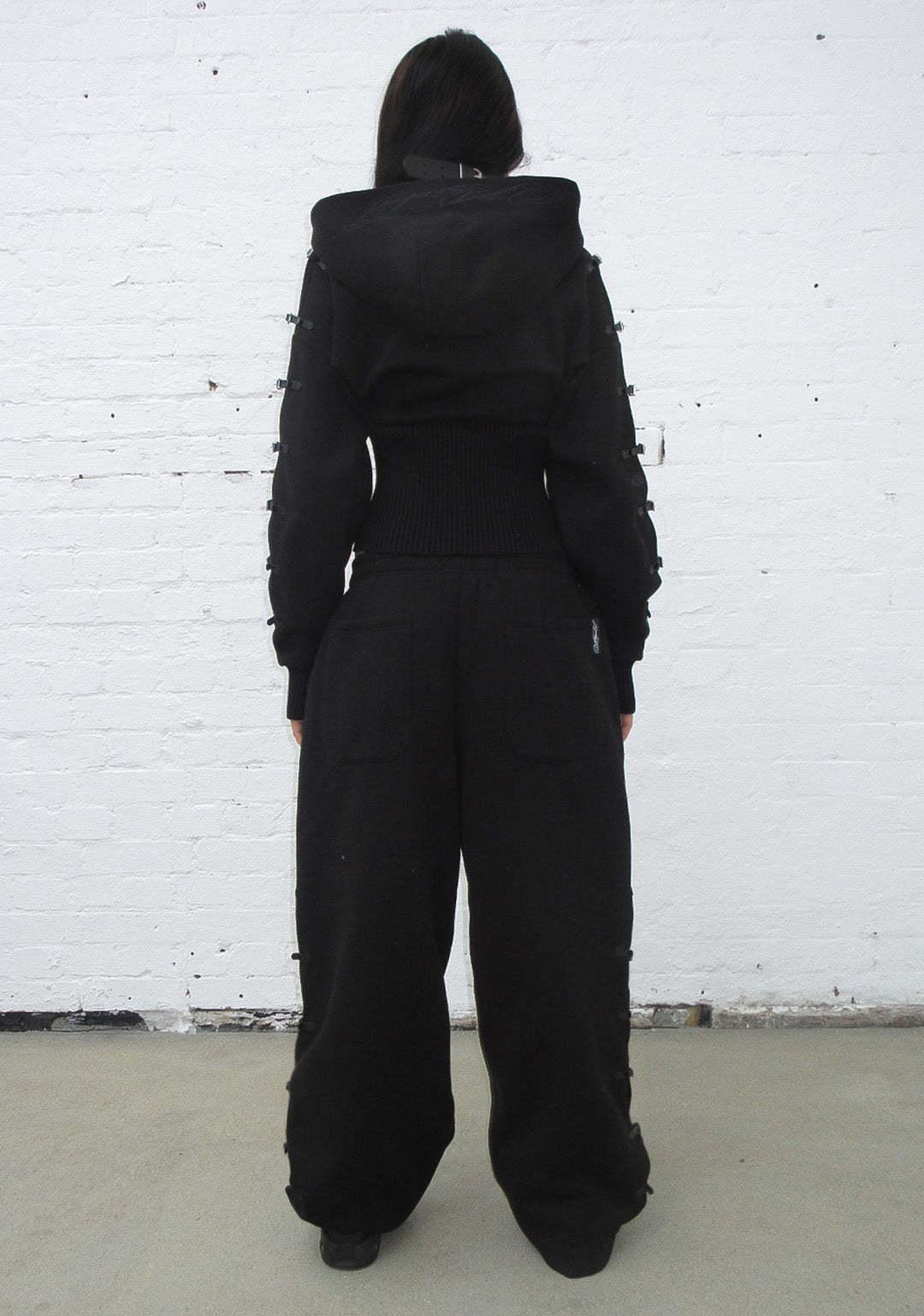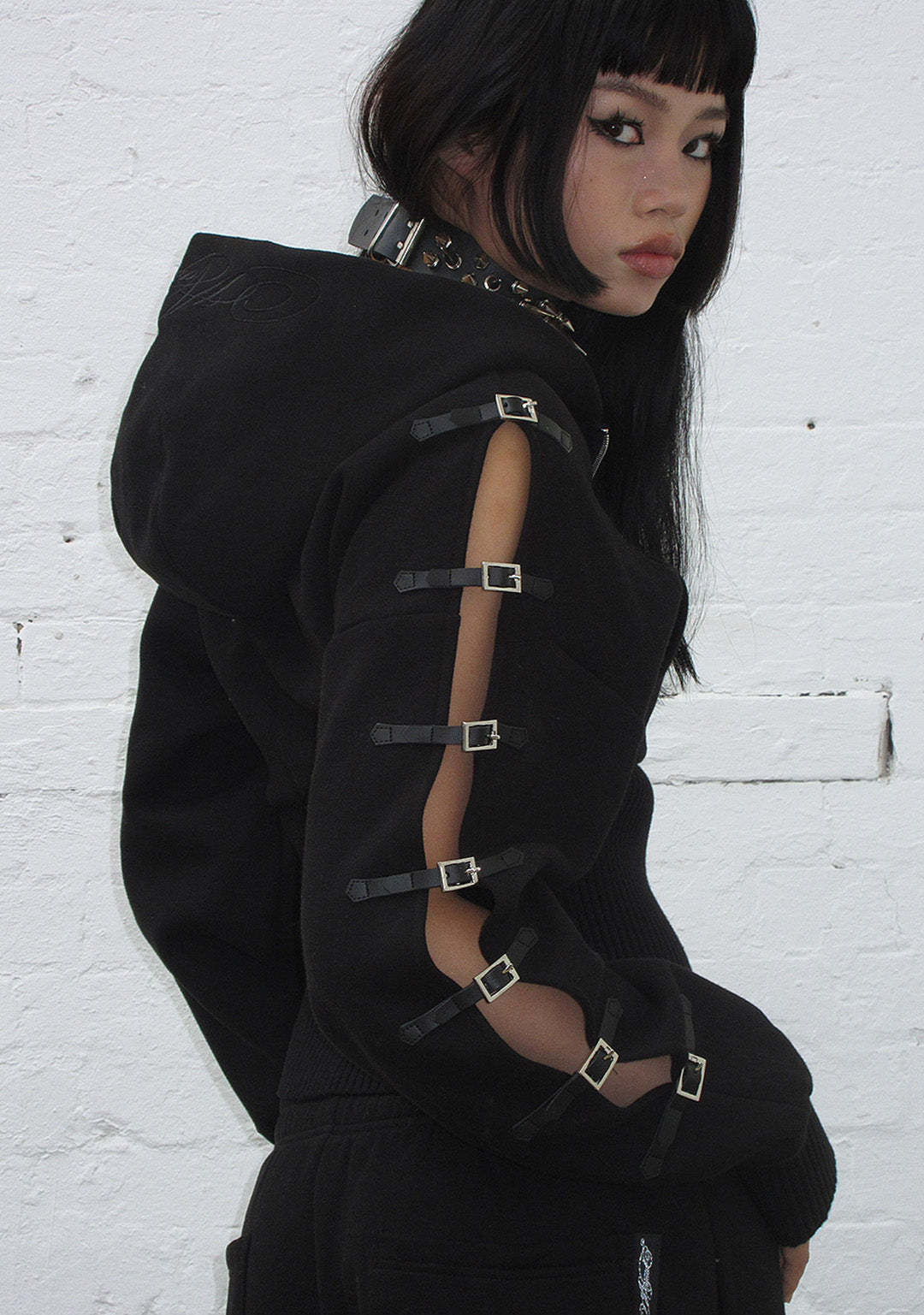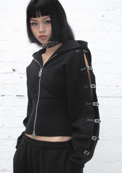 CRUSH BUCKLE FITTED WAIST ZIP HOODIE BLACK