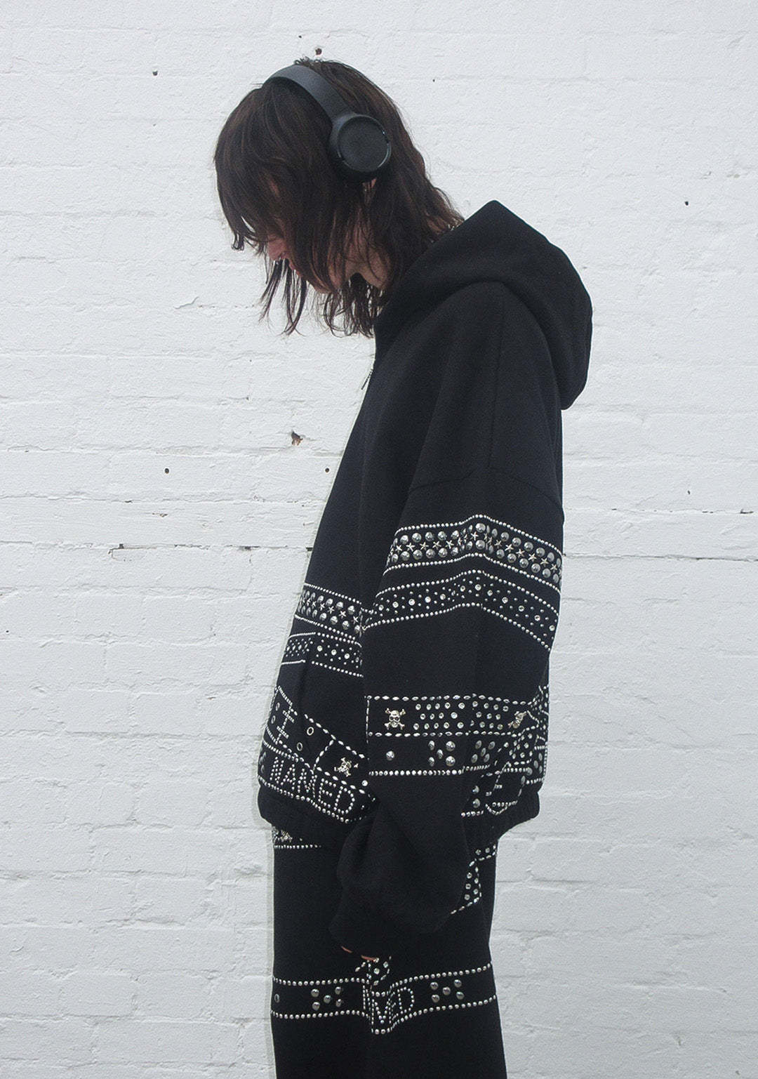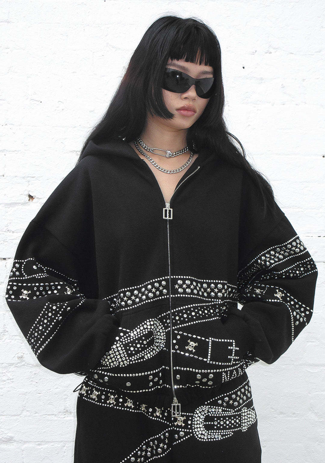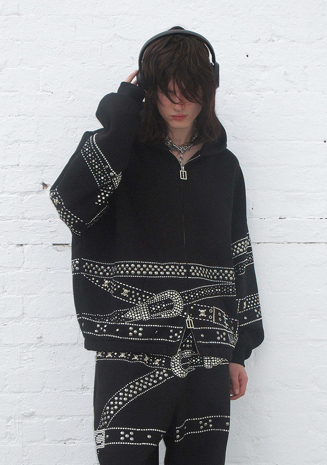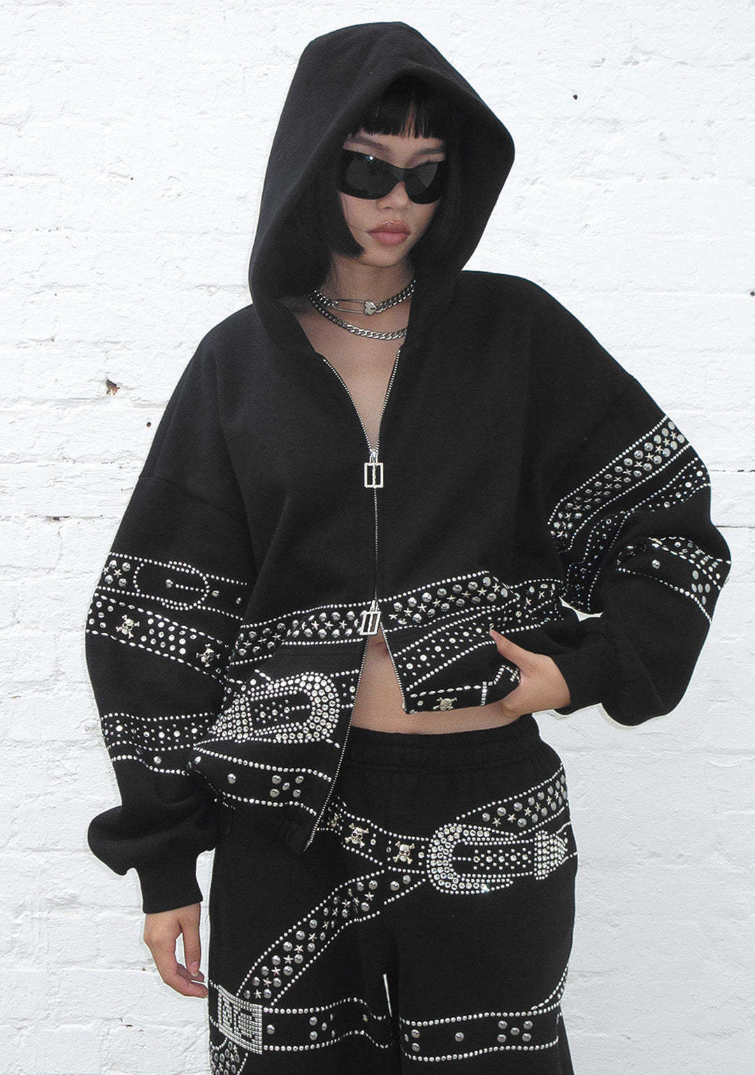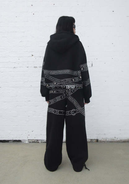 CRUSH STUDDED BELT ZIP HOODIE BLACK