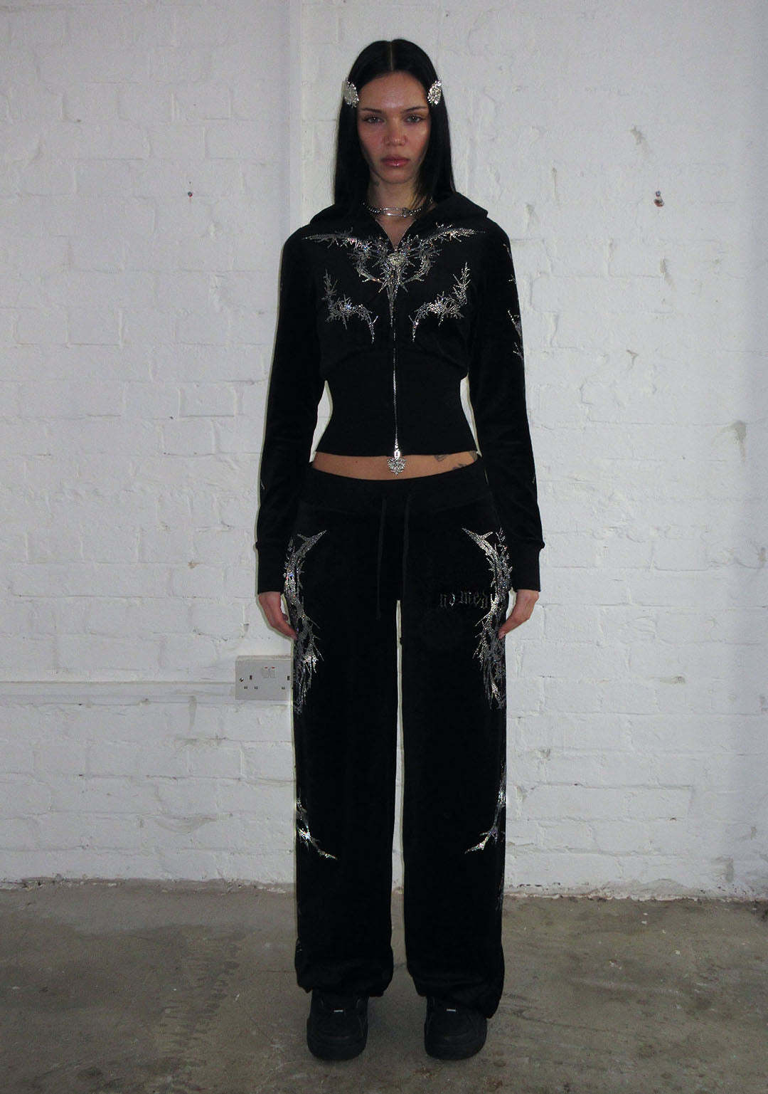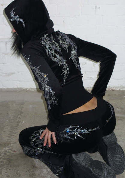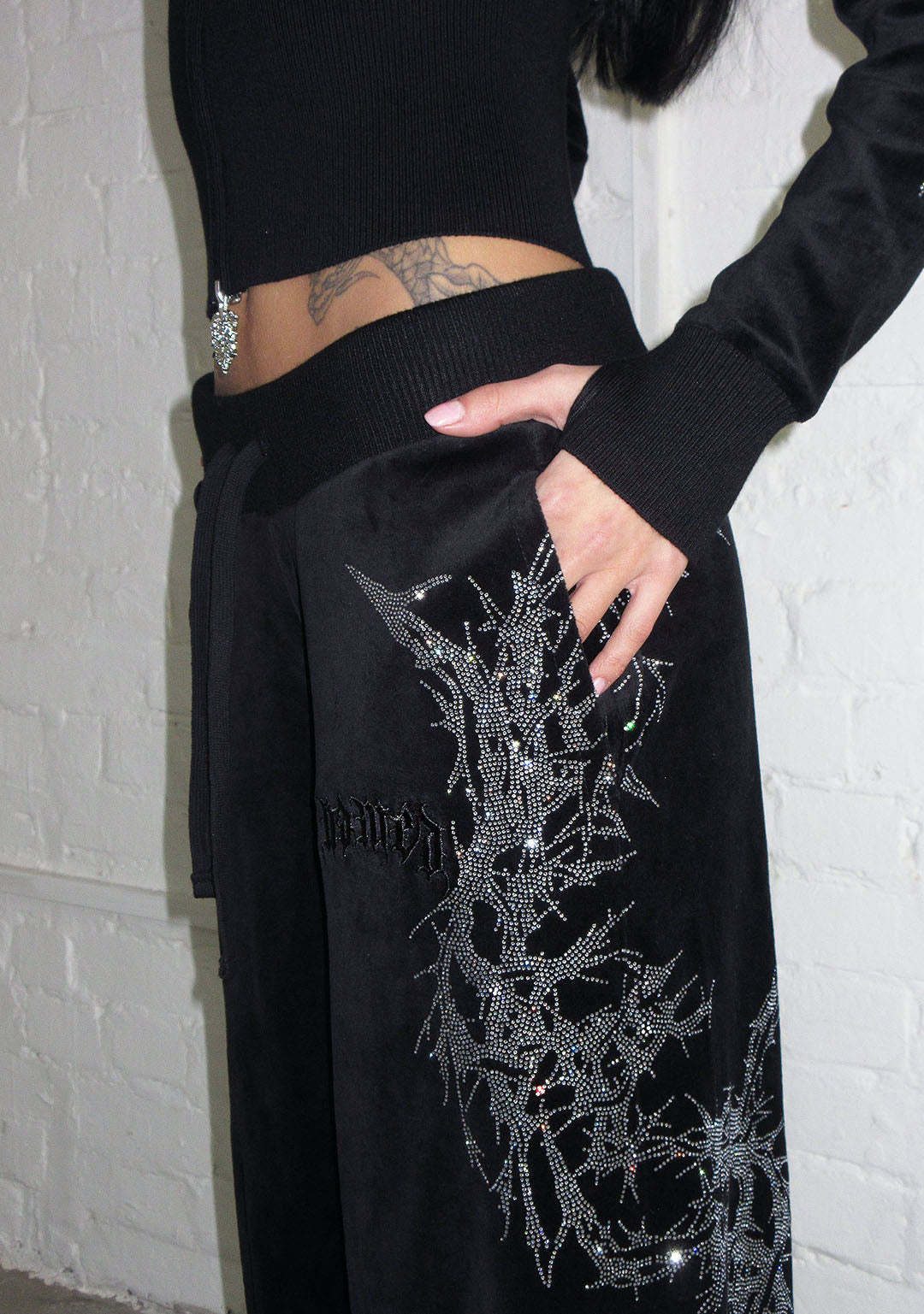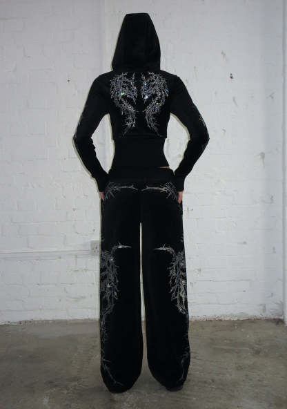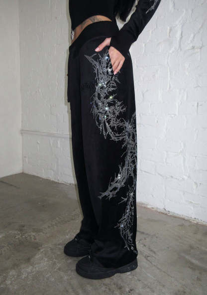 CURSE RHINESTONE VELOUR SWEATPANTS BLACK