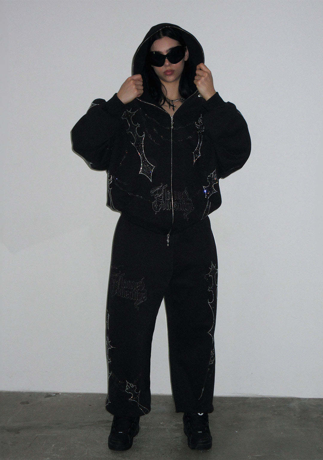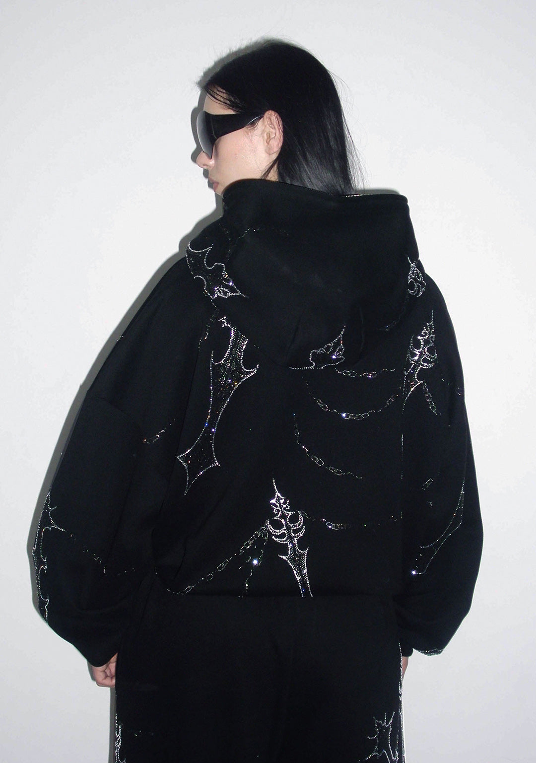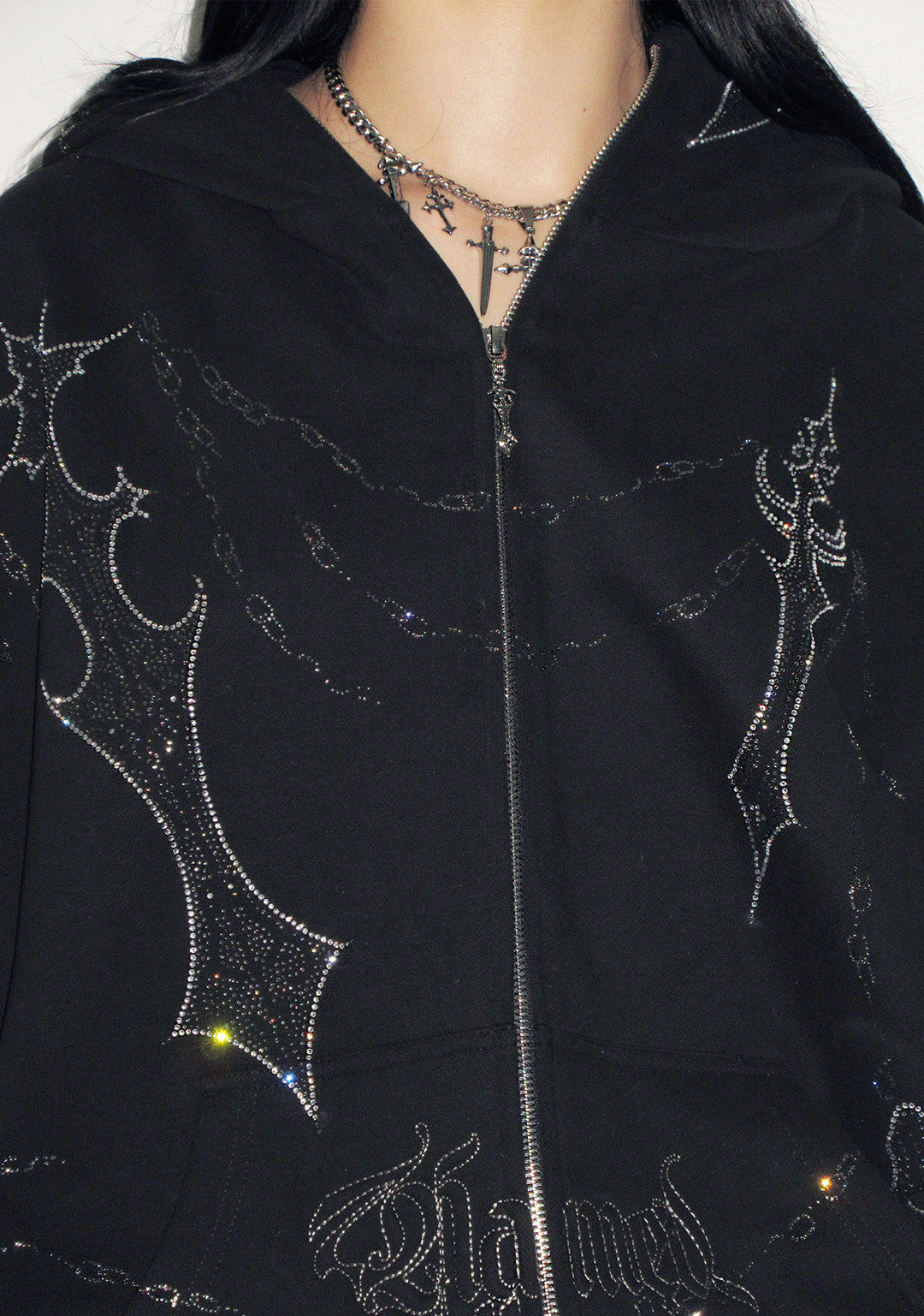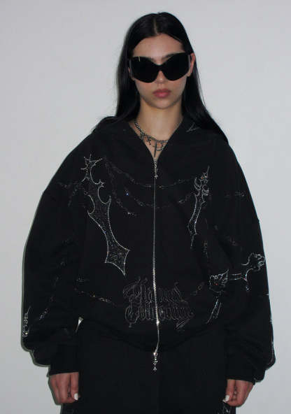 DAGGERS RHINESTONE ZIP HOODIE BLACK