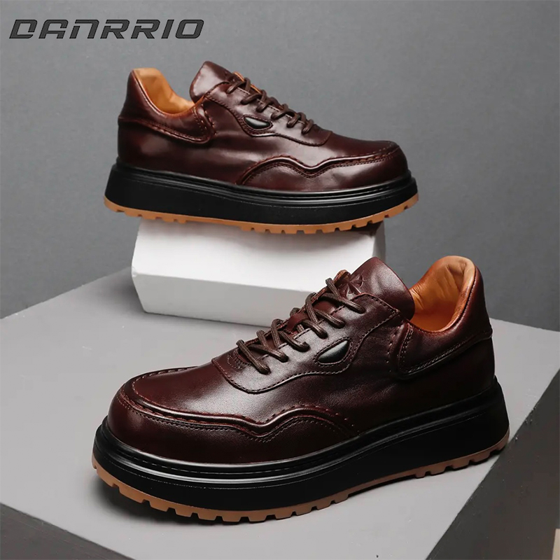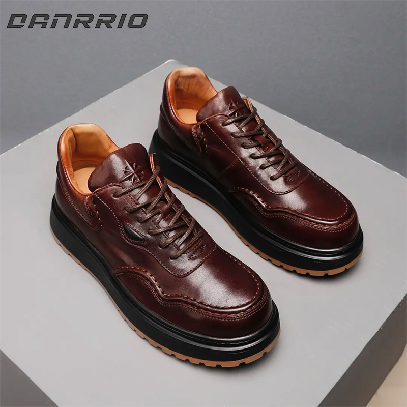 DANRRIO Leather Casual Retro Heave-soled Lightweight Handmade Leather Shoes