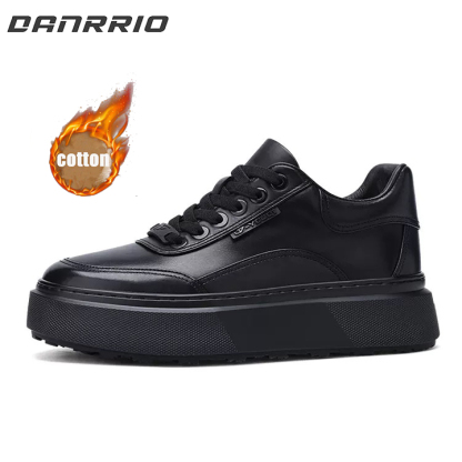 DANRRIO New Leather Thick Sole Plus Warm High Top Cotton Shoes | Cowhide Casual Shoes
