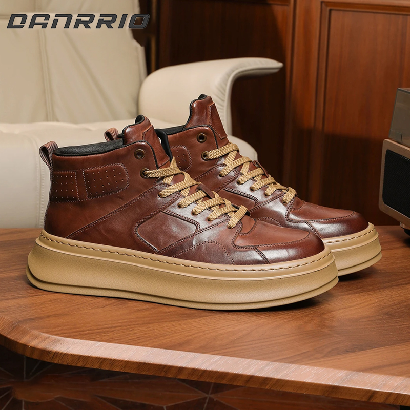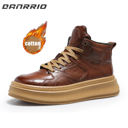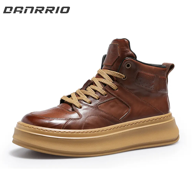 Style: Casual, outdoorLaces: Lace-upLeather features: Half-grain leatherUpper material: CowhideInsole material: CowhideToe Style: Round ToeHeel style: Thick soleSole material: Natural rubber