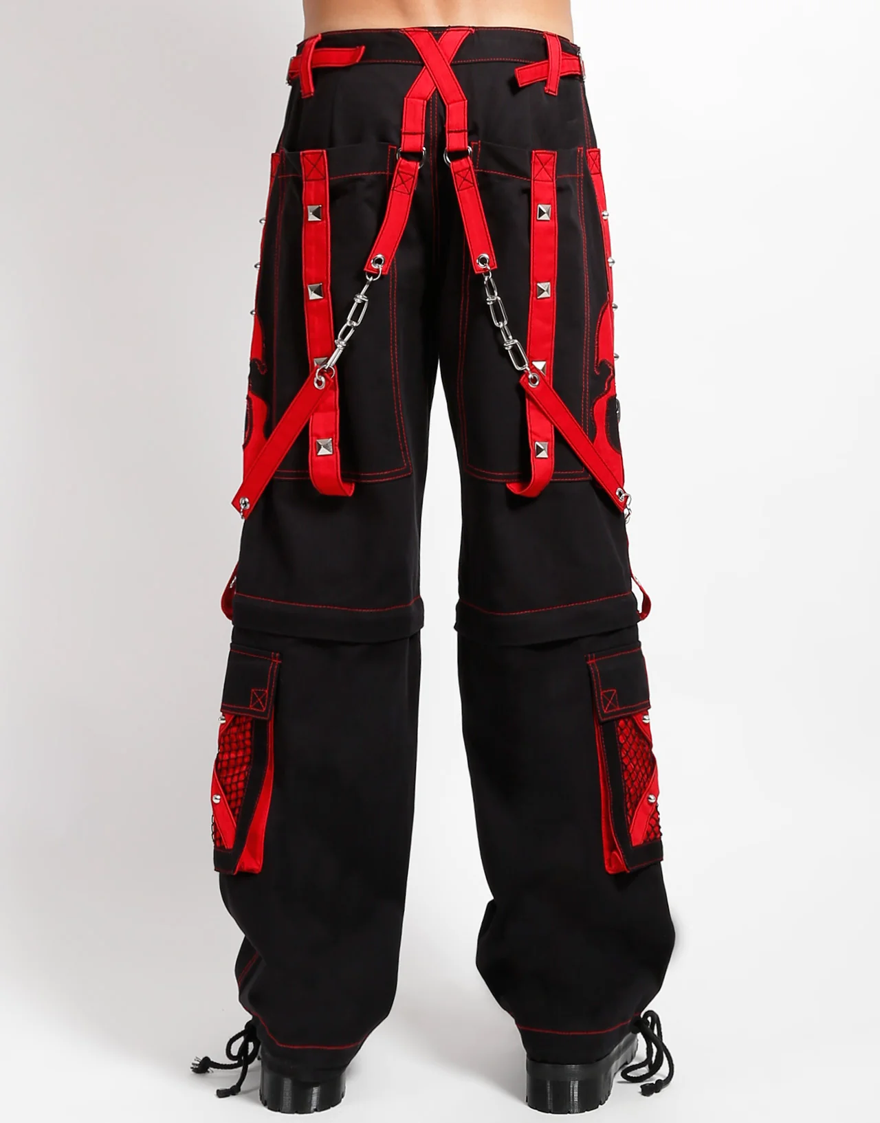 Accept no imitations! From the originator of all things DarkStreet, these black and red Skull pants feature a slimmer fit leg in black and lime with all silver hardware, removable straps, adjustable ankles, D-rings, and deep pockets with a large embroidered skull on both sides.