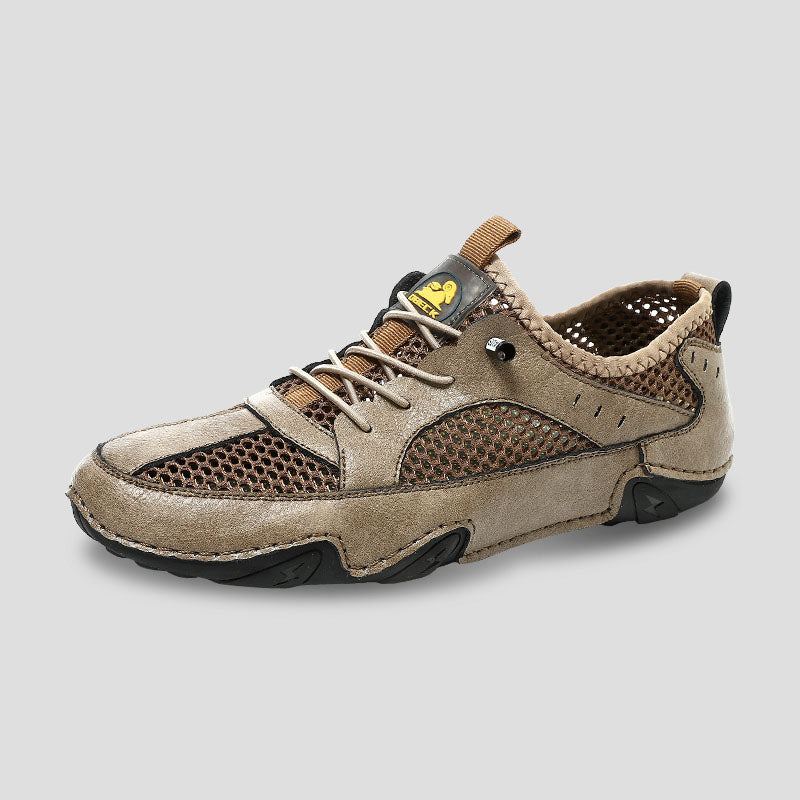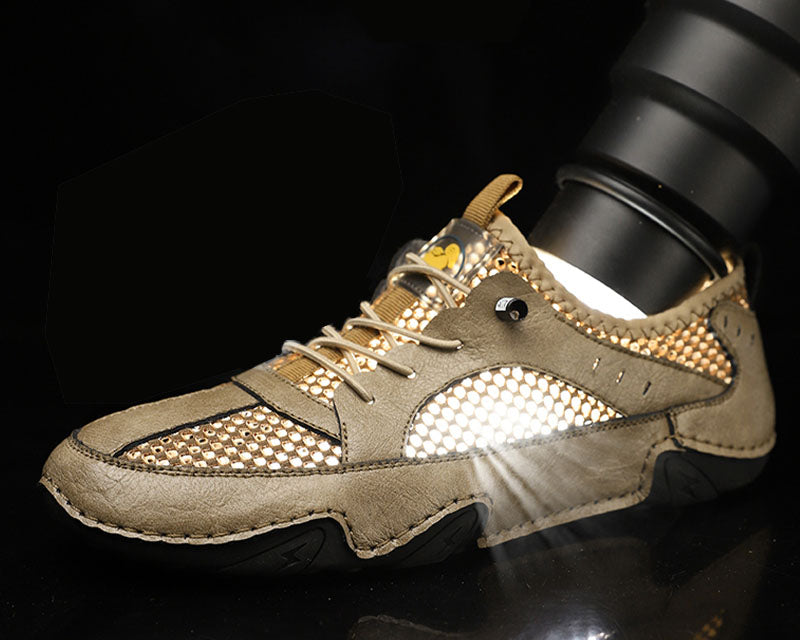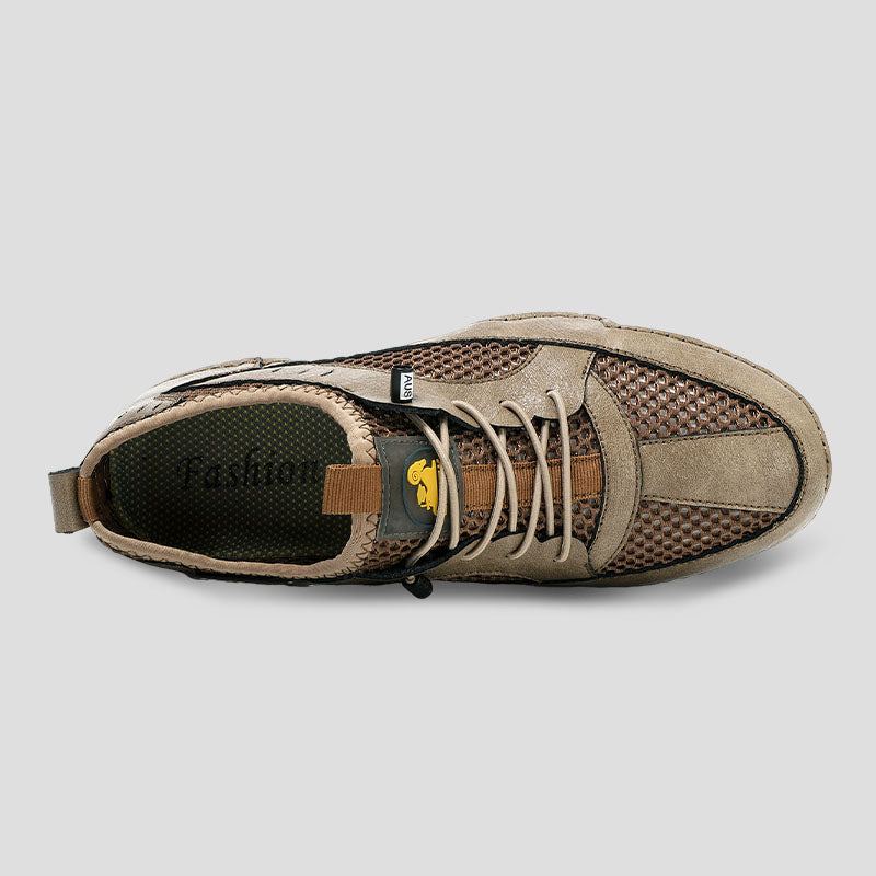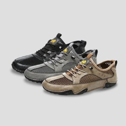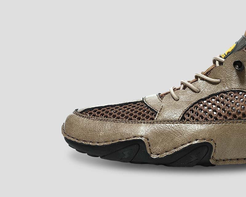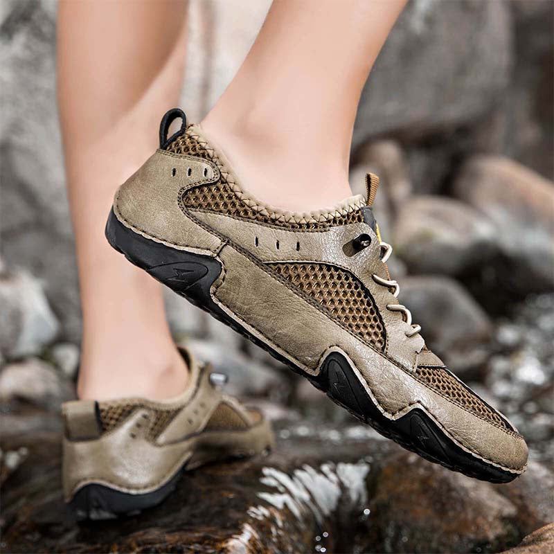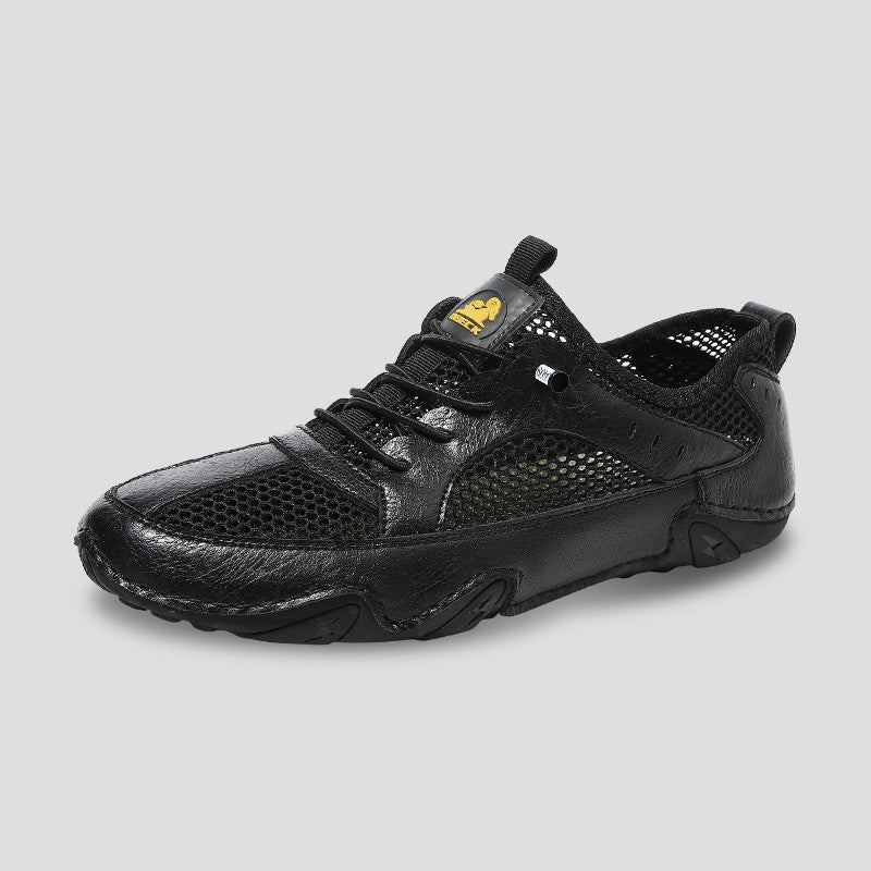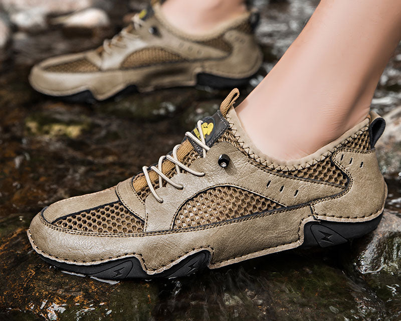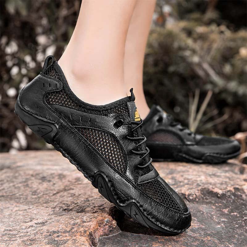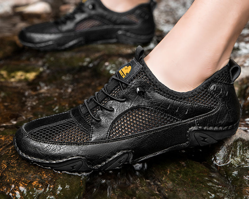 Crafted with premium top-grain leather and breathable mesh fabric, these shoes are built to last while keeping your feet cool and dry.