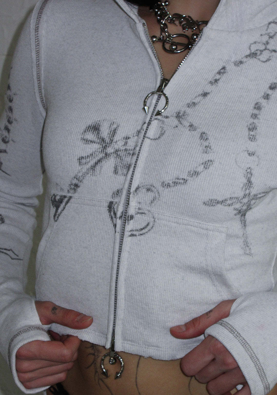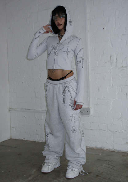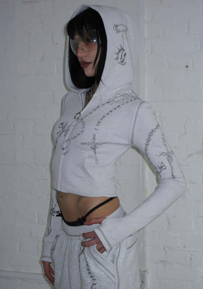 DESTROY CROPPED FITTED RIB ZIP HOODIE GREY MARL