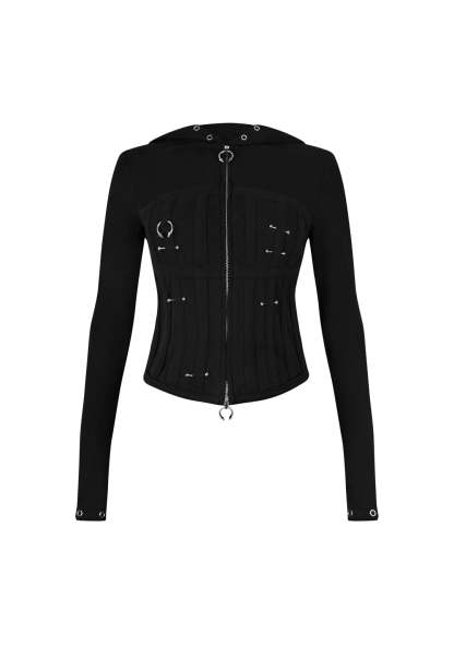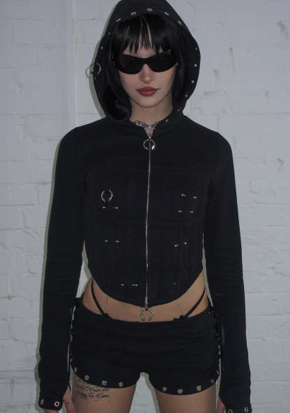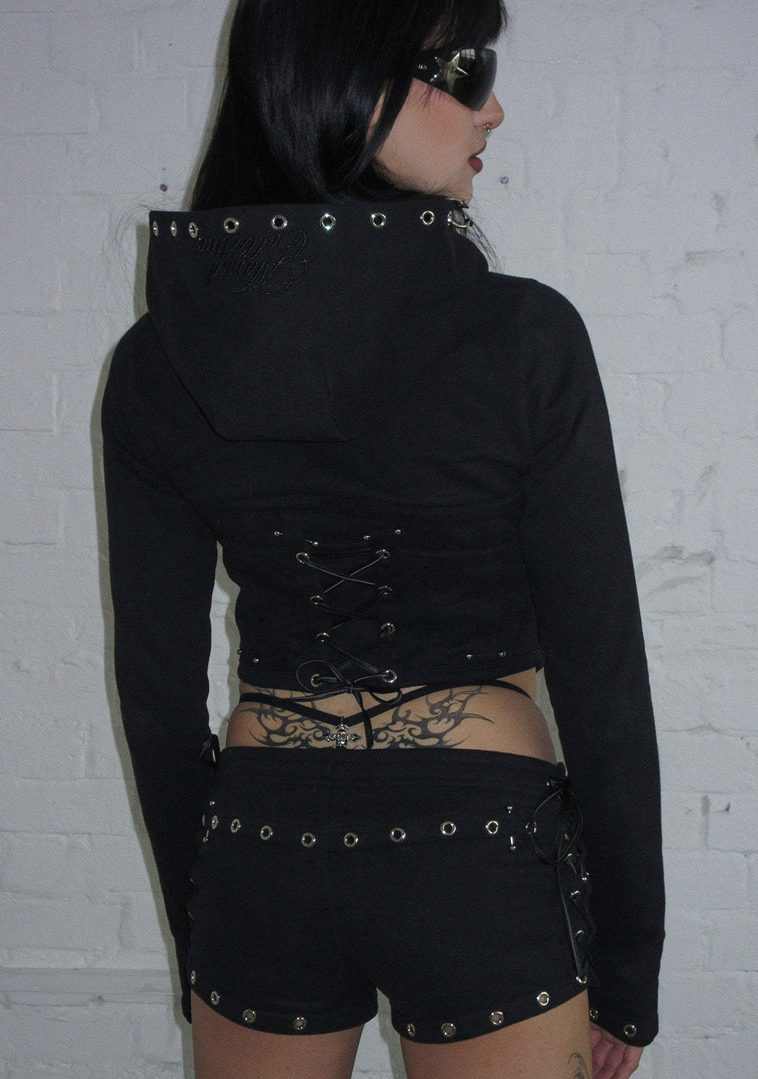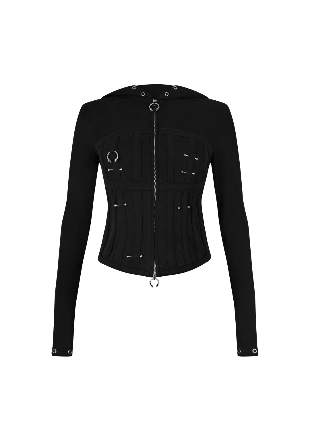 DESTROY PIERCED CORSET ZIP HOODIE BLACK