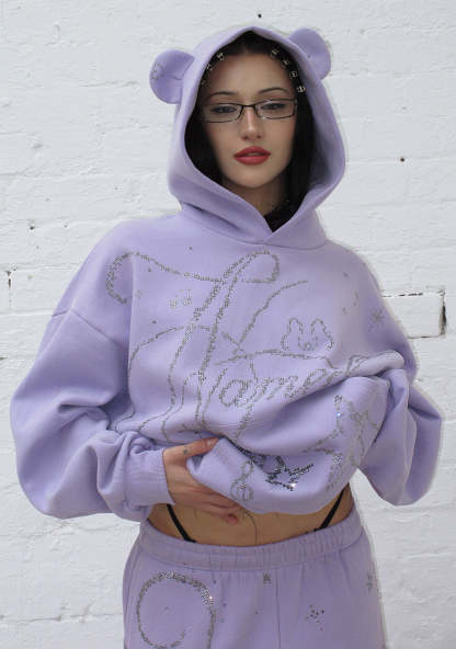 DREAMER RHINESTONE TEDDY PULLOVER HOODIE LILAC