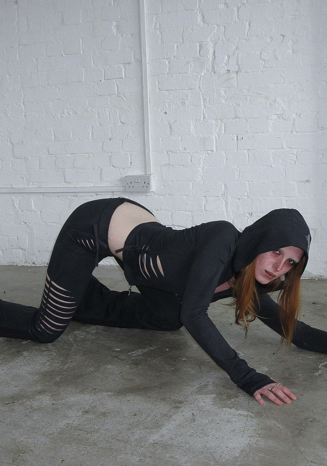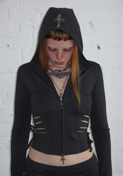 ENVY SNAKESKIN SLASHED SCULPT STRETCH ZIP HOODIE CHARCOAL