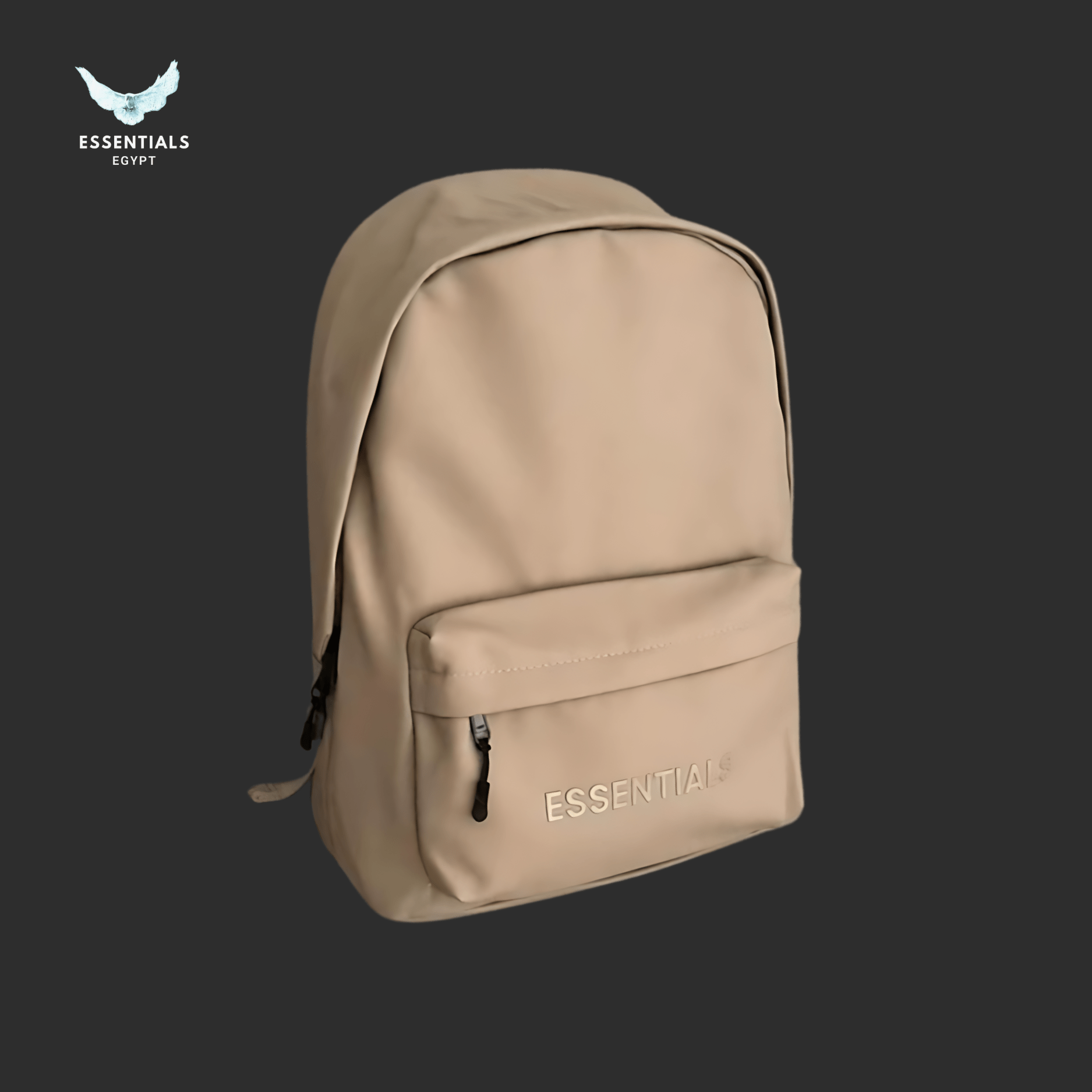 Signature Fear of God backpack in earthy brown tones. Minimalist build and logo detail. 100% authentic. Ships in Egypt. Dimensions: 40cm,16cm,29cm.