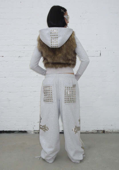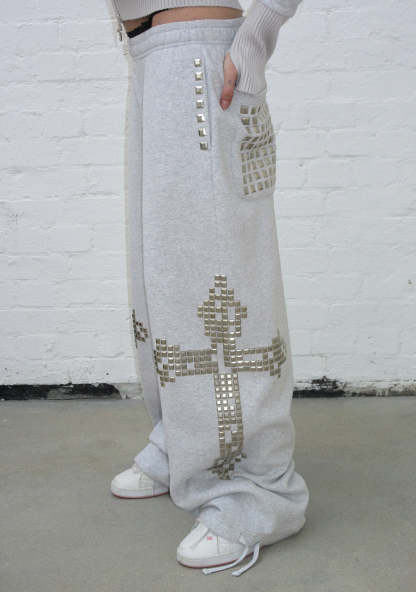 FAITHFUL STUDDED OVERSIZED SWEATPANTS GREY MARL