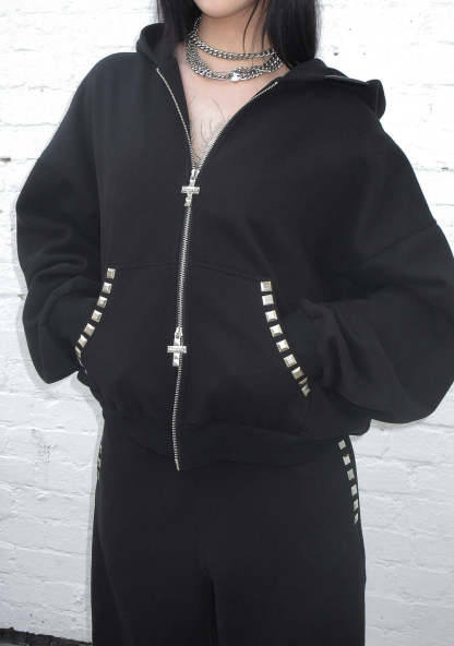 FAITHFUL STUDDED ZIP HOODIE BLACK