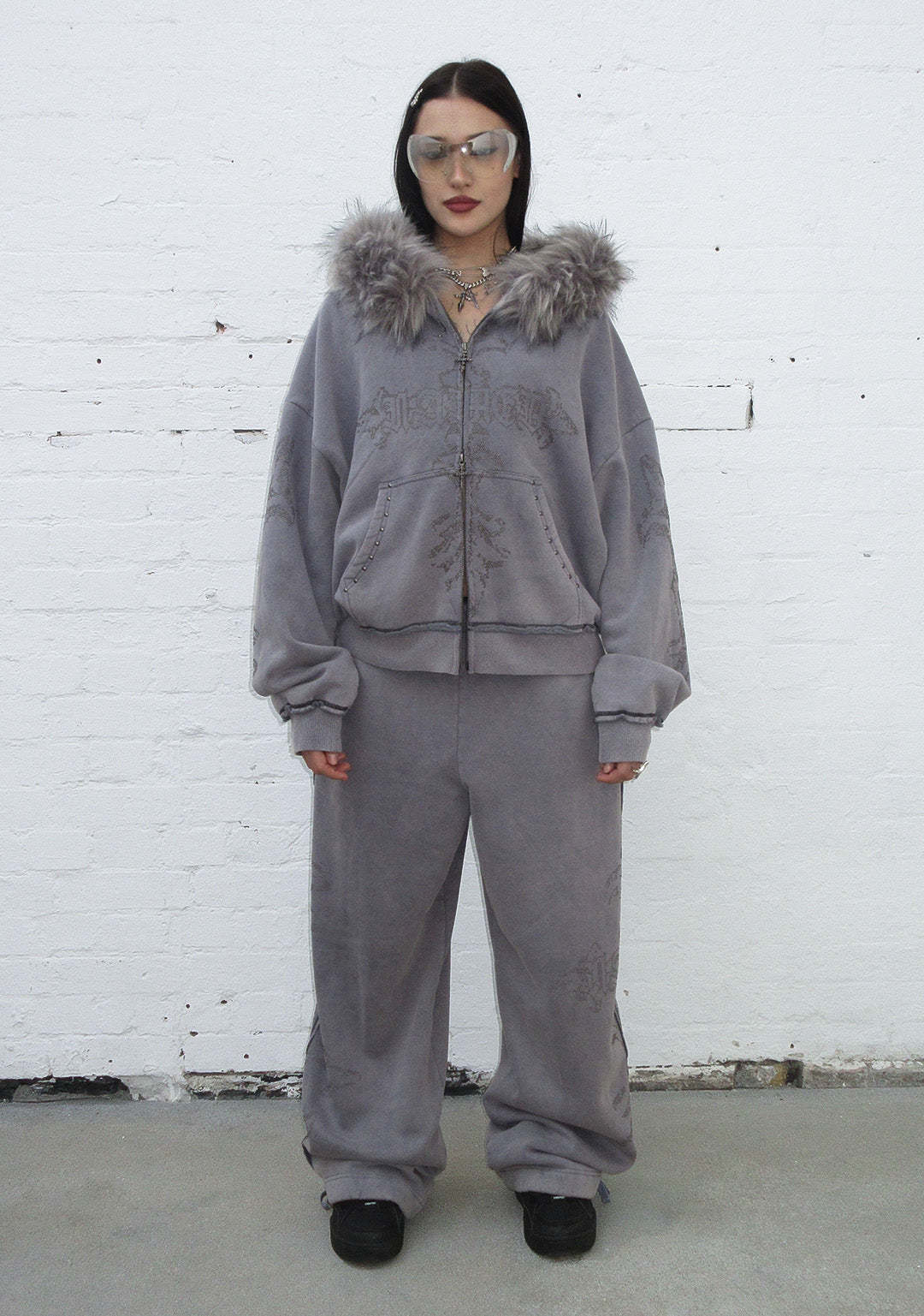 FERAL STUDDED OVERSIZED SWEATPANTS WASHED GREY