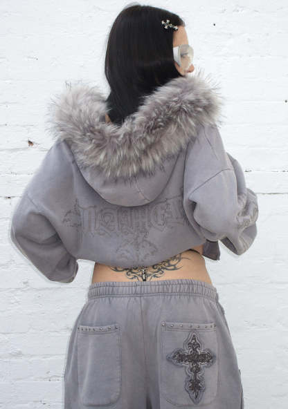 ★ Mindfully made with luxury, extra soft heavyweight washed grey 73% organic cotton, 27% recycled polyester fleece. Note: as fabric is acid-washed, minor shade variation is to be expected between pieces