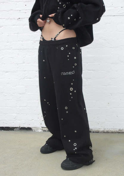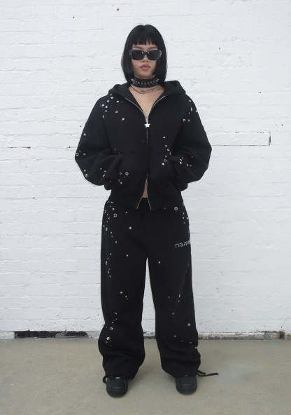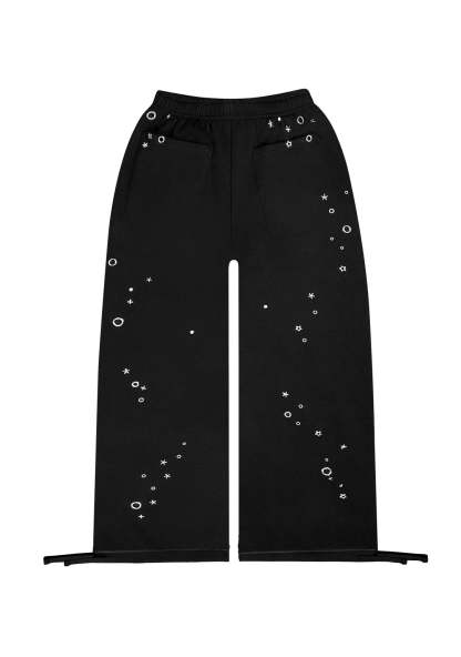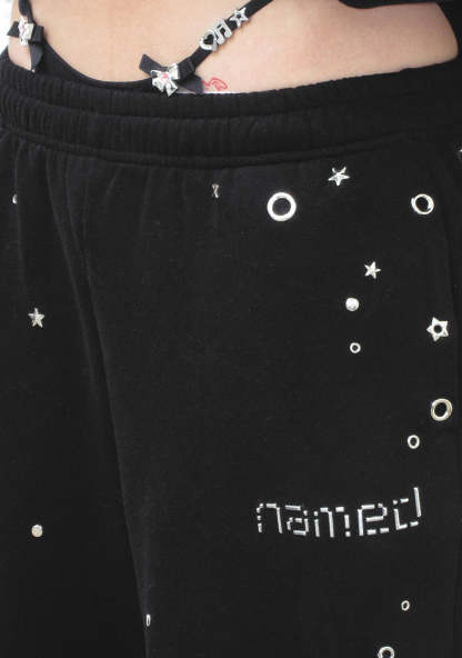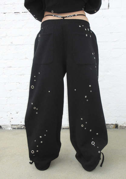 GLITCH EYELET OVERSIZED SWEATPANTS BLACK