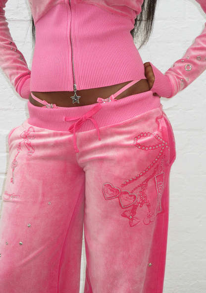 GLITCH EYELET VELOUR SWEATPANTS WASHED HOT PINK