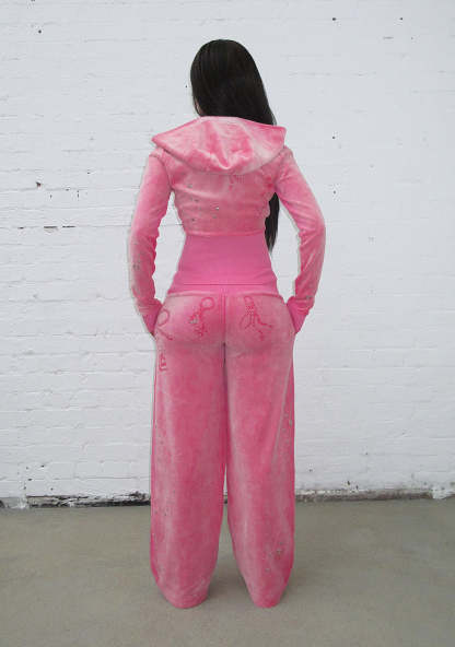 ★ Crafted from luxury, extra soft heavyweight washed hot pink 80% cotton, 20% polyester velour fabric. Note: as fabric is acid-washed, minor shade variation is to be expected between pieces.
