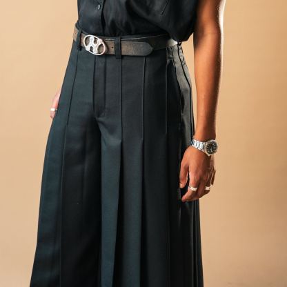 Inspired by the traditional Japanese hakama, these pants feature 8 pleats around each leg, representing the 8 virtues of bushido