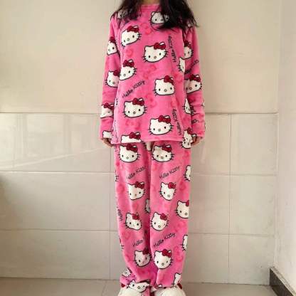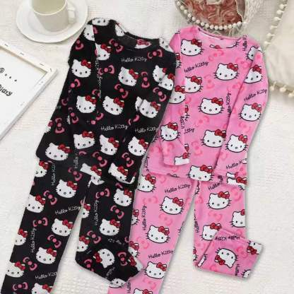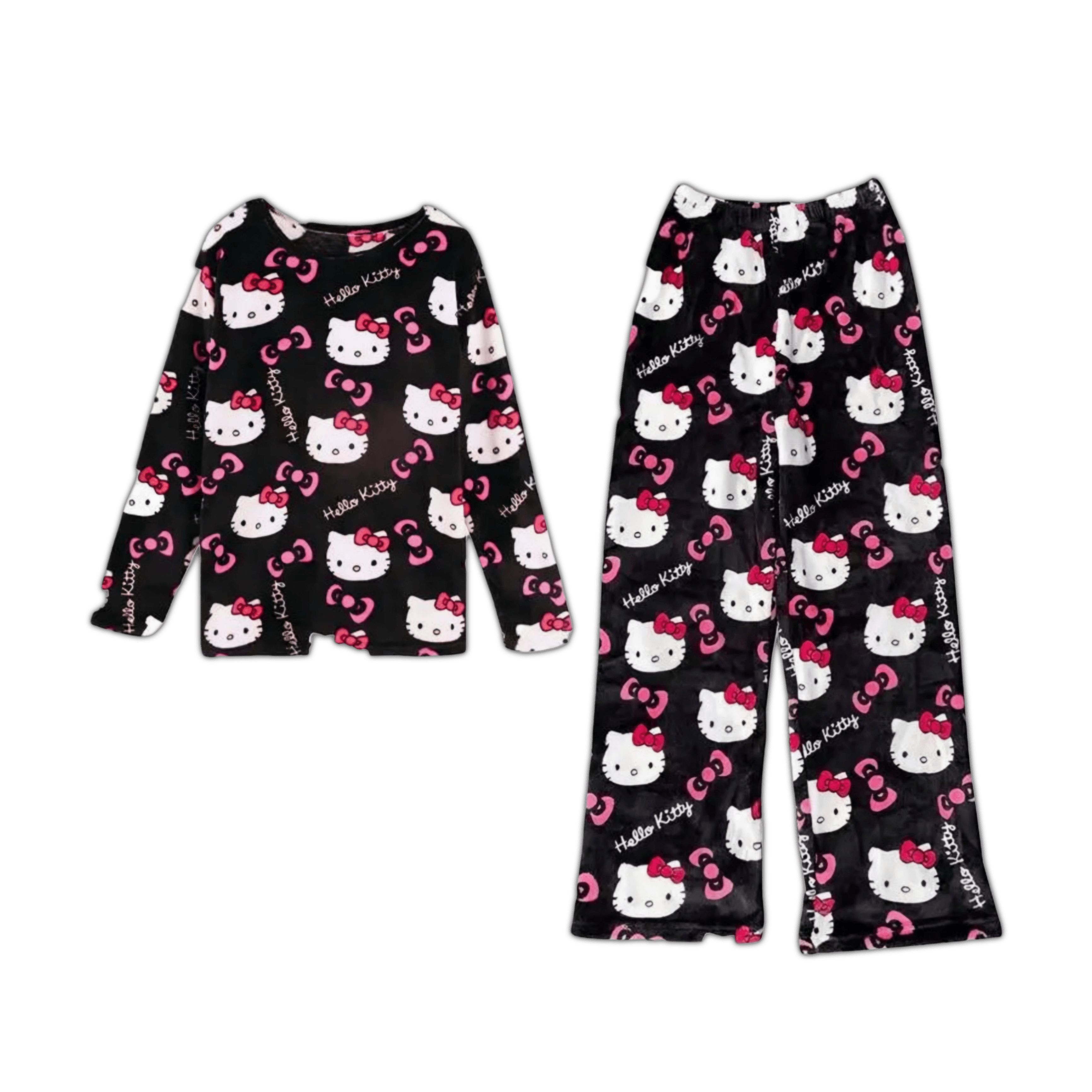 Featuring an adorable Hello Kitty-themed design with cute and playful details, this soft and cozy fleece pajama set is perfect for staying comfy while embracing the snuggly spirit.
