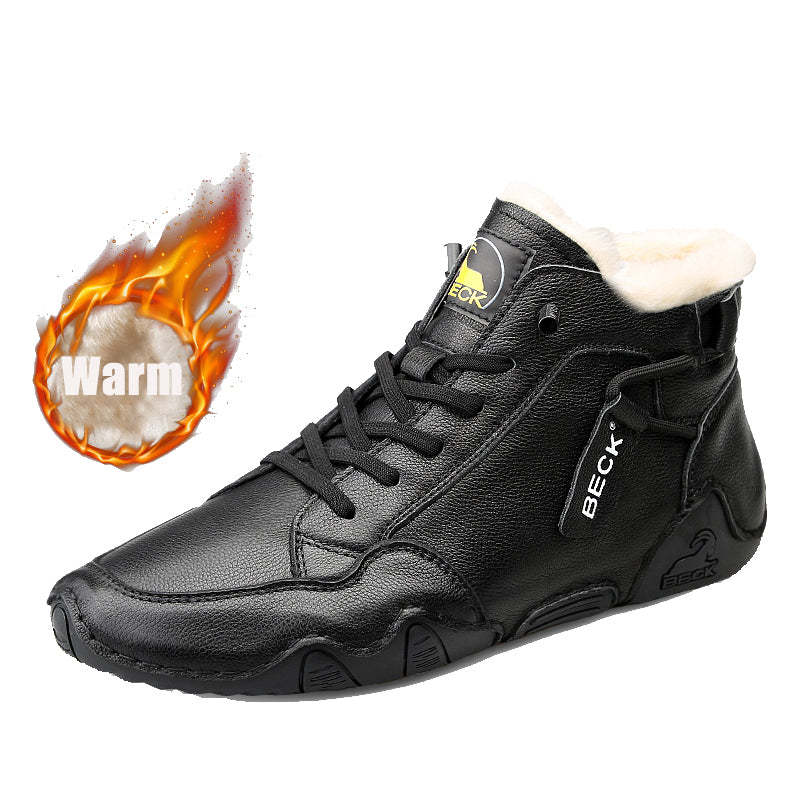 Material: cowhideStyle: Men's boots, casual leather shoesFunction: warm, anti-slip and waterproofYou need to wear - Good shoes! Wear fashion, show beauty! Every step is to represent yourself