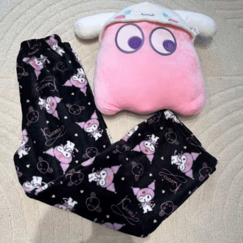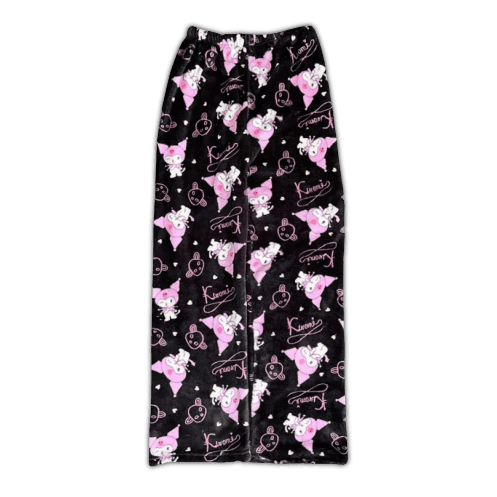 Featuring an adorable Kuromi-themed design with cute and playful details, these soft and cozy fleece pants are perfect for staying comfy while embracing the snuggly spirit.