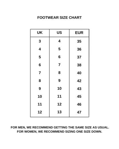 Women's Sizing: Size Down 1 Size