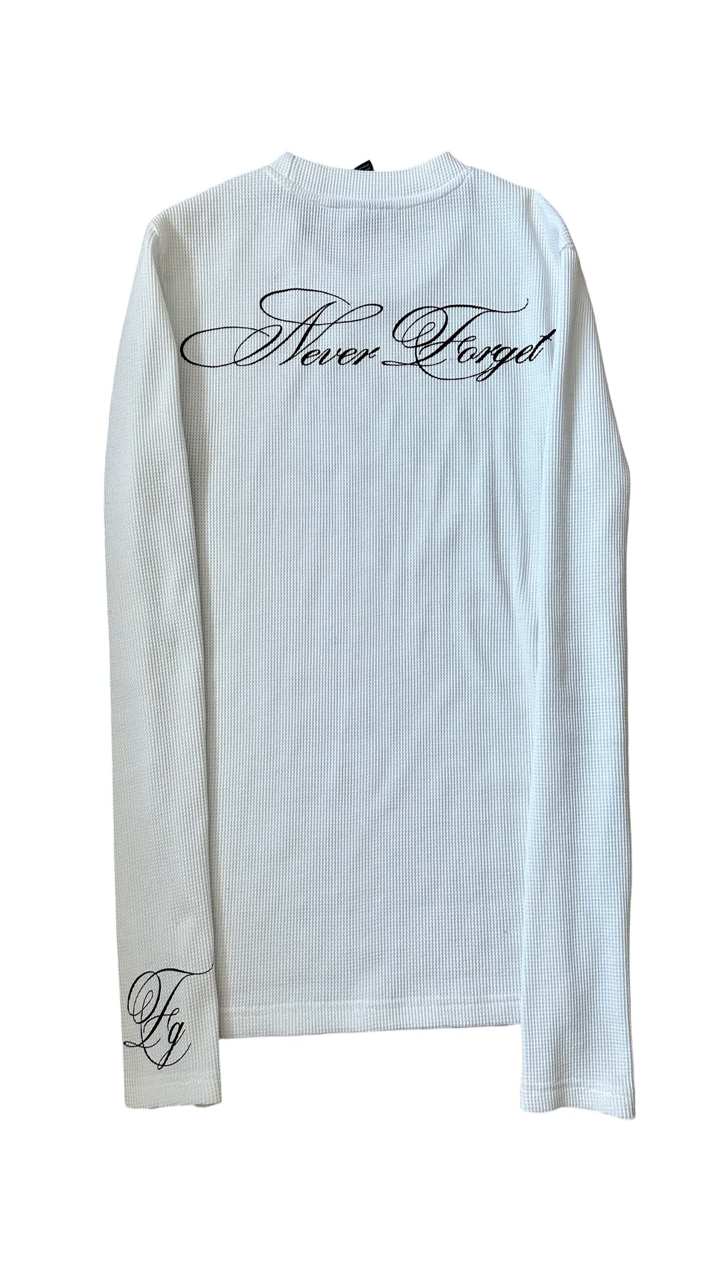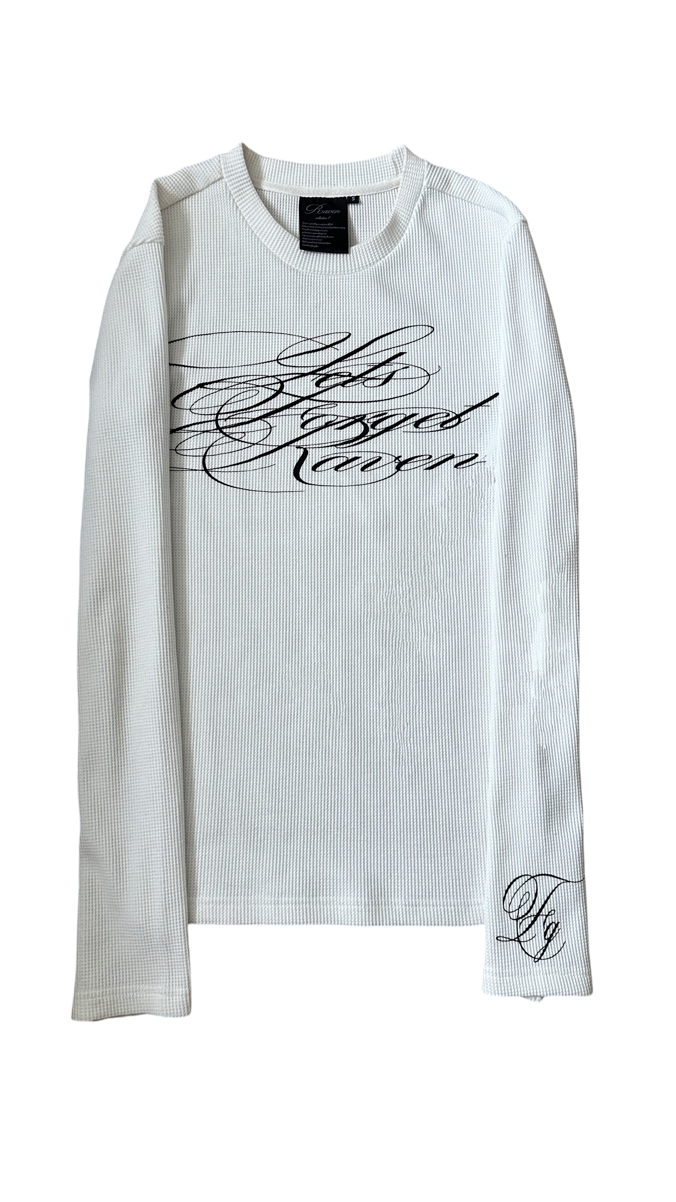 cursive screenprint on sleeve front & back