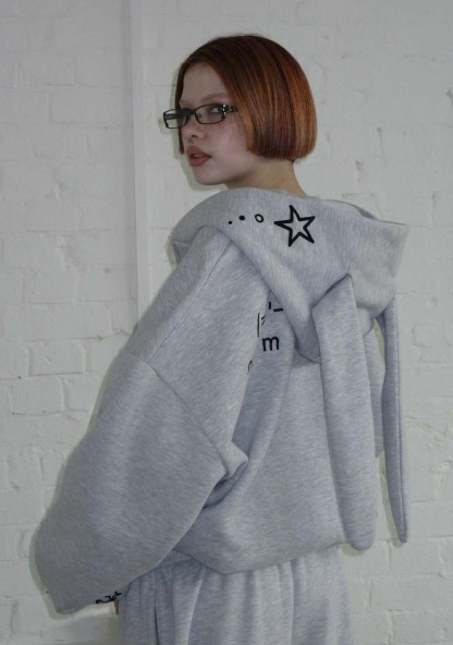 MALFUNCTION BUNNY ZIP HOODIE GREY MARL (DETACHABLE EARS)