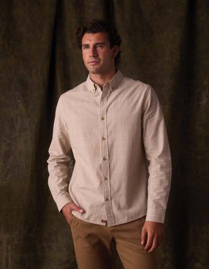 Nikko Classic Button Up in Tan Plaid