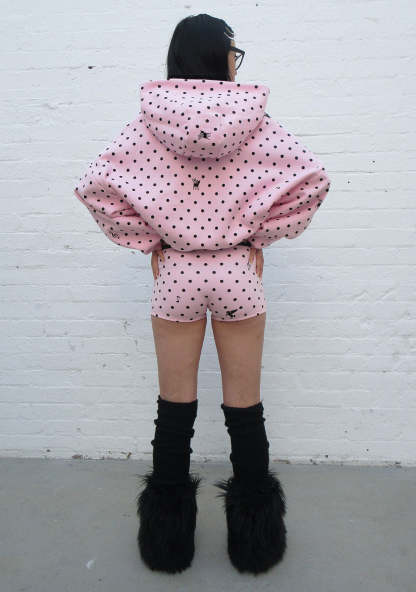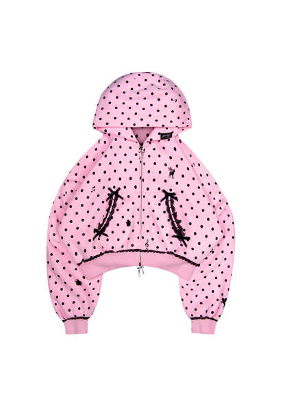NOVA POLKA DOT CROP ZIP HOODIE BABY PINK