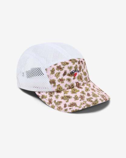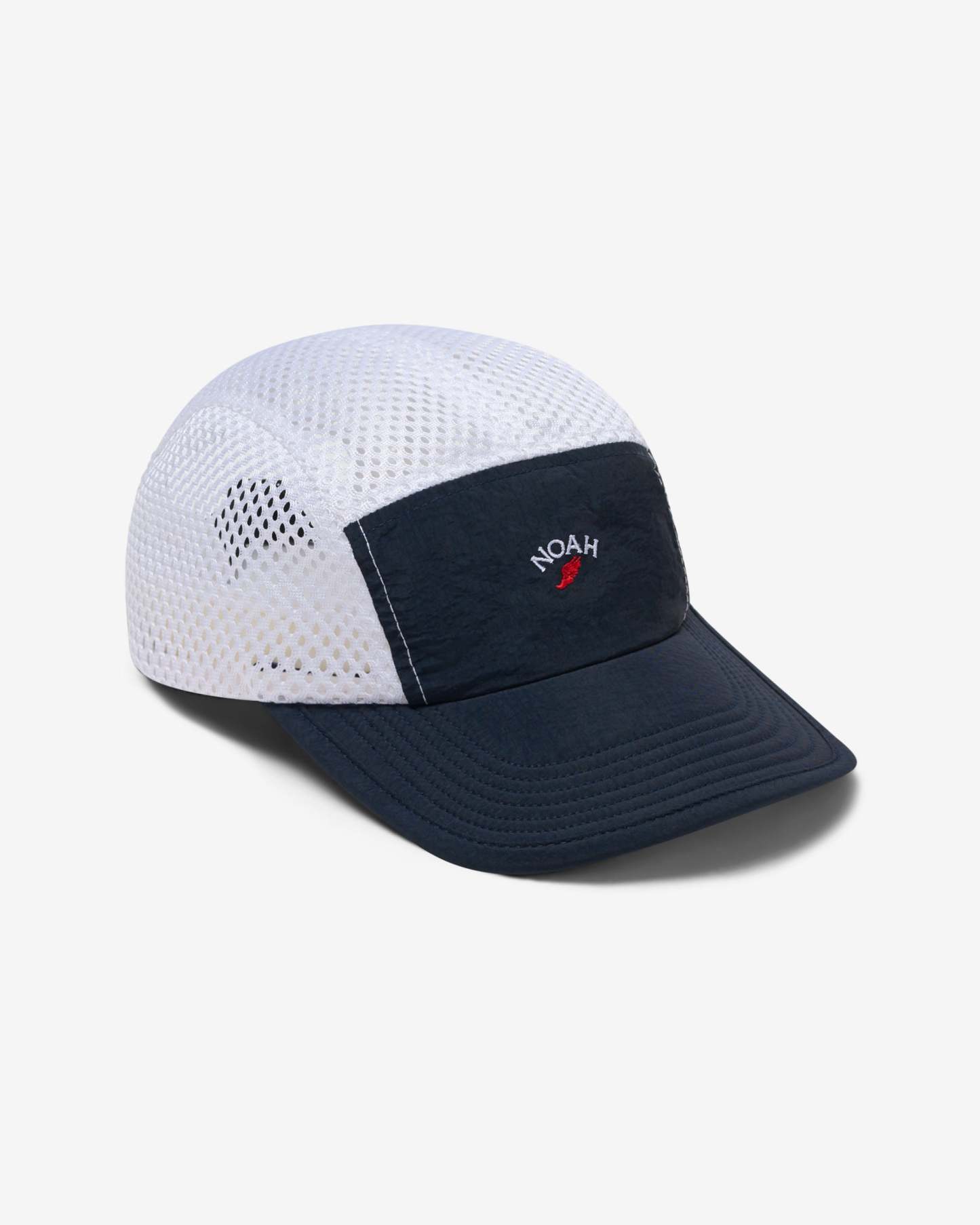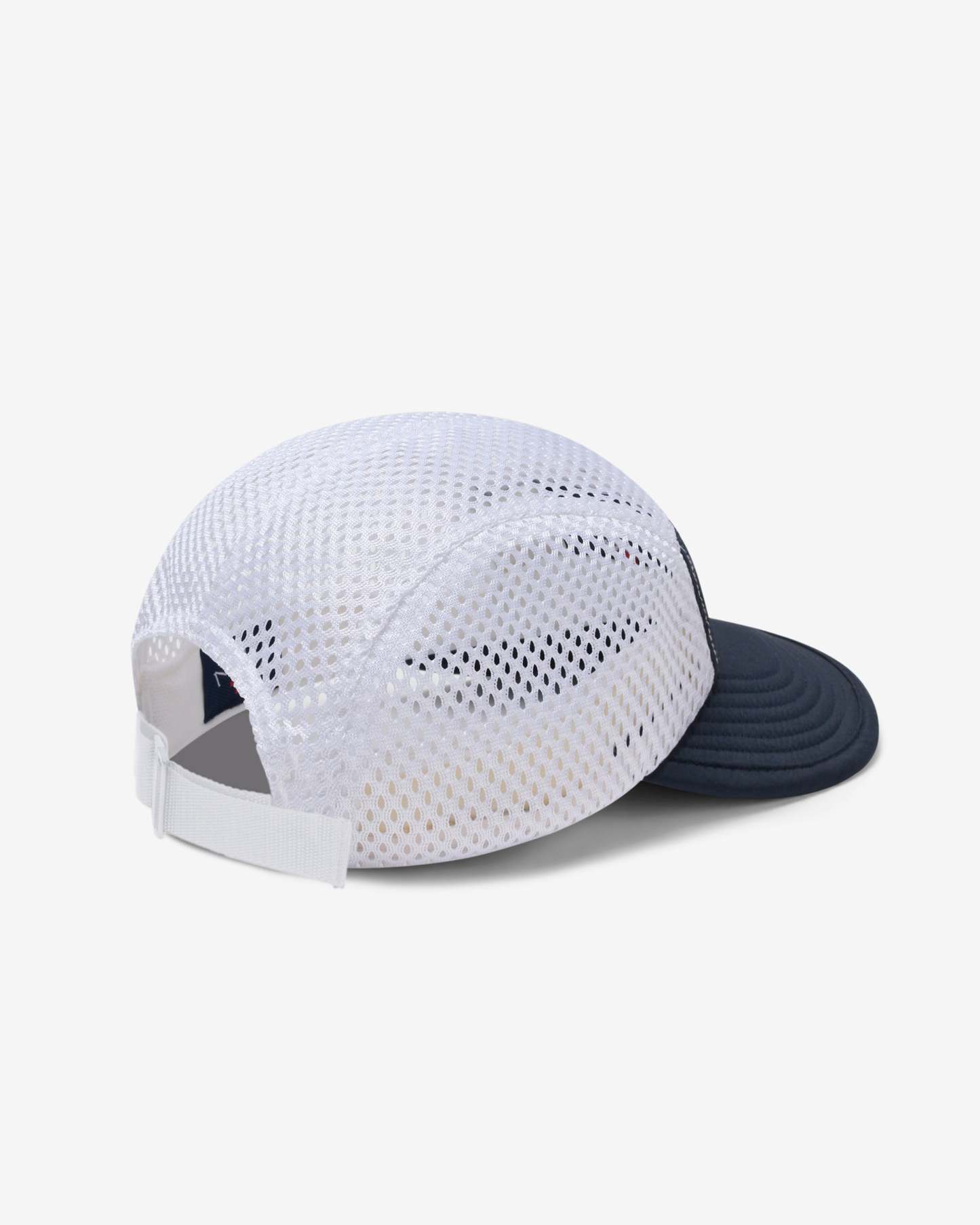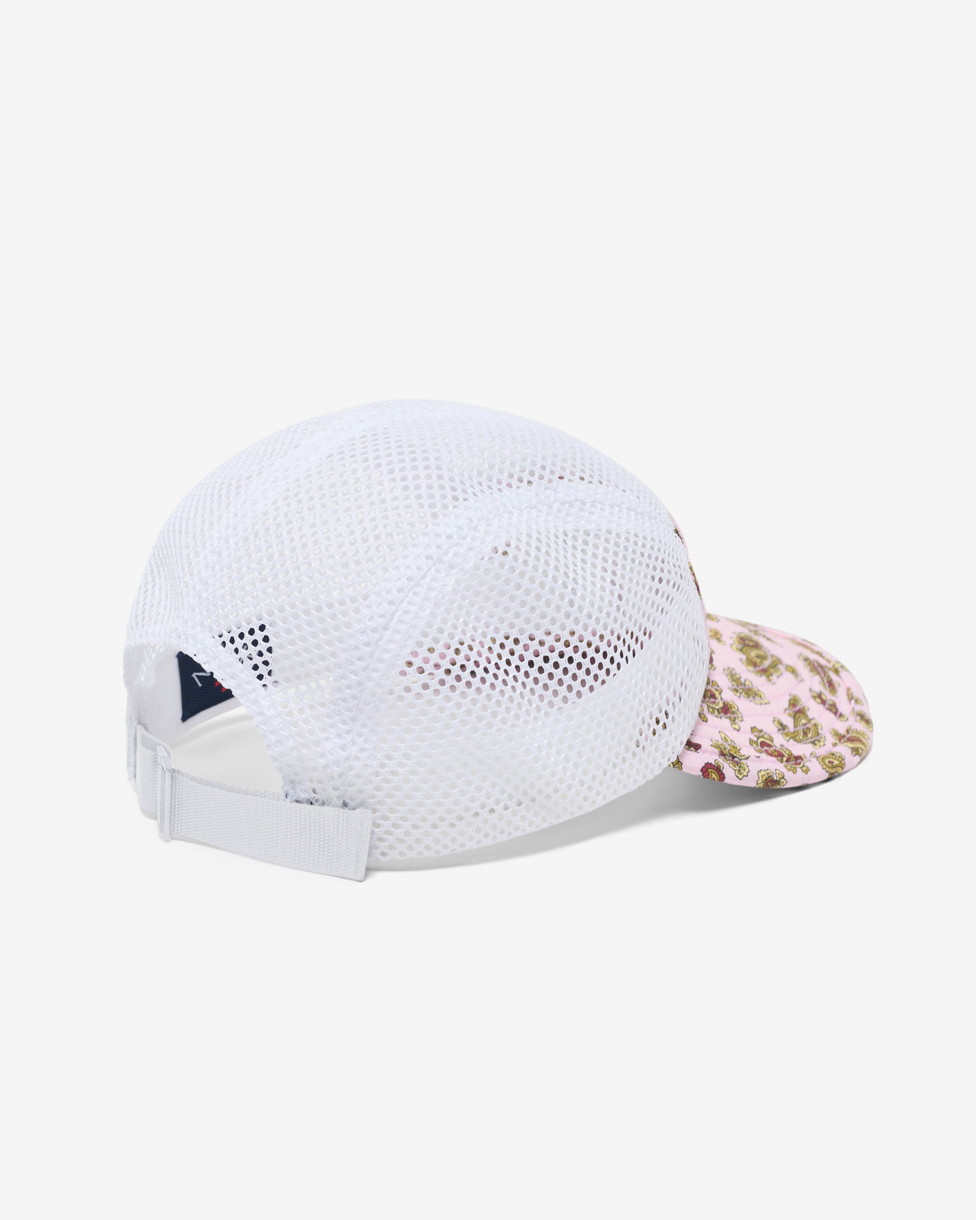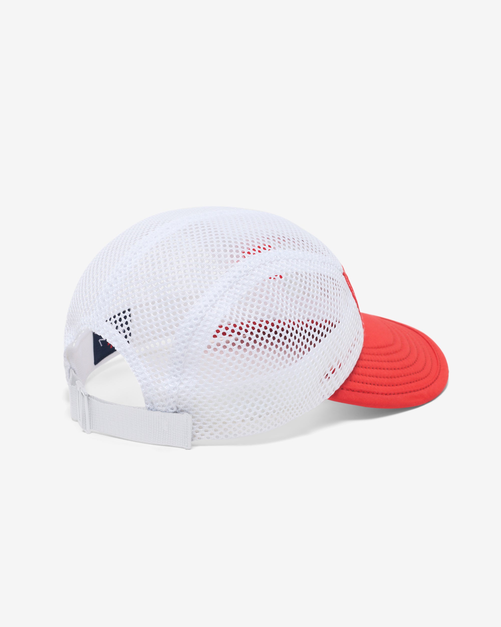 Made in USA. 100% nylon with mesh side and top panels. Sports clasp back. Embroidered logo on front