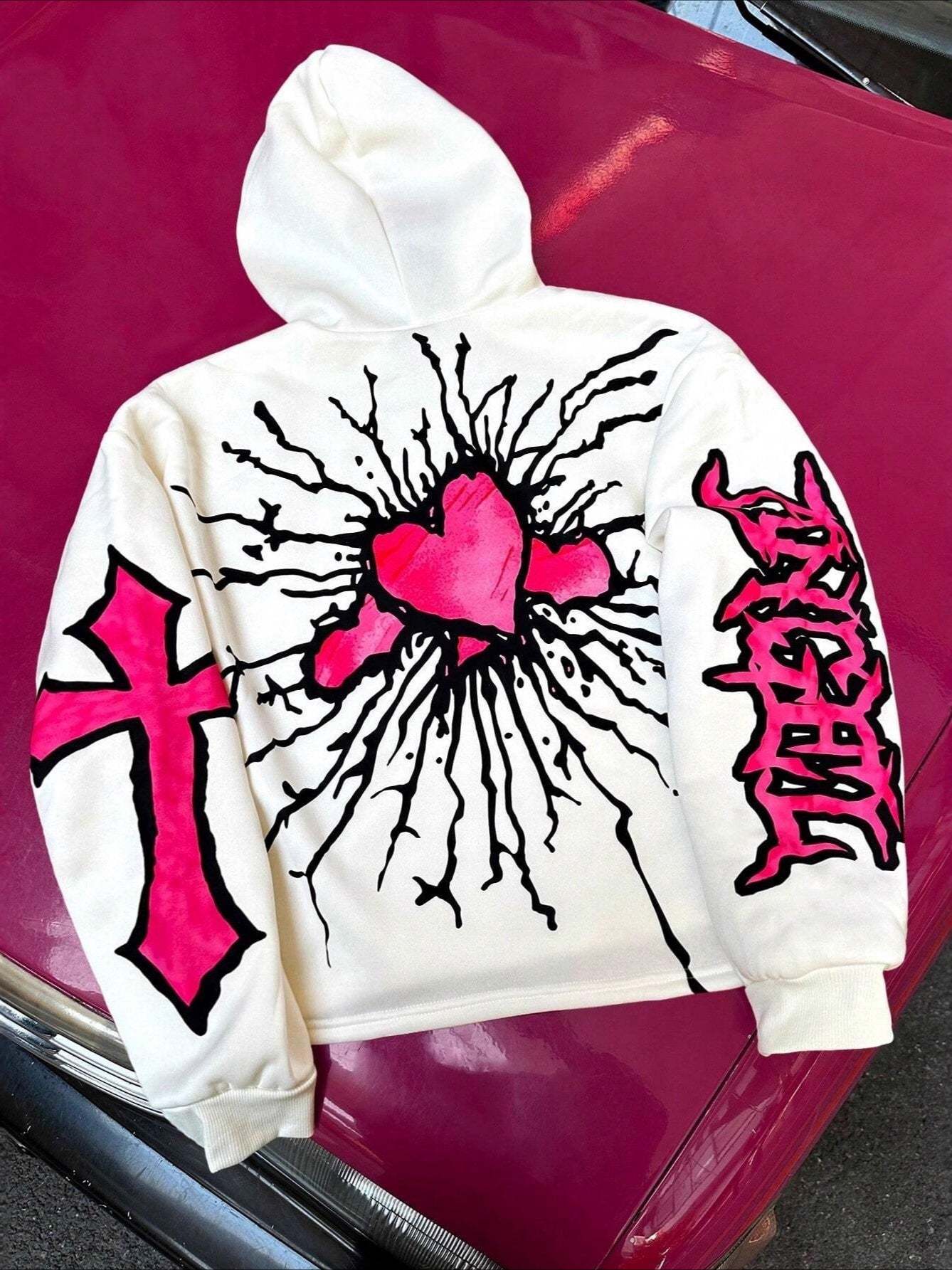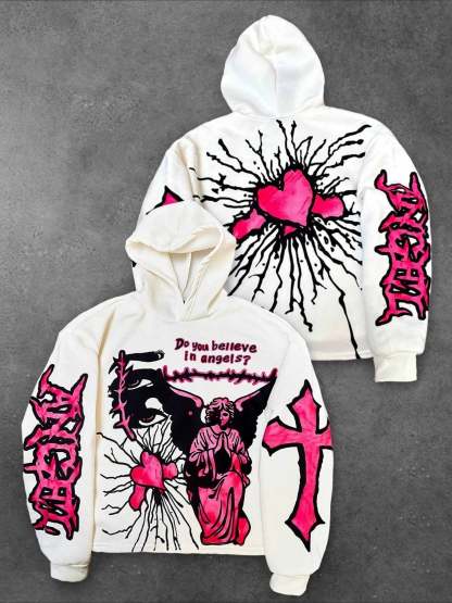 Pink Heart Angel Gothic Short Double-sided Sweatshirt
