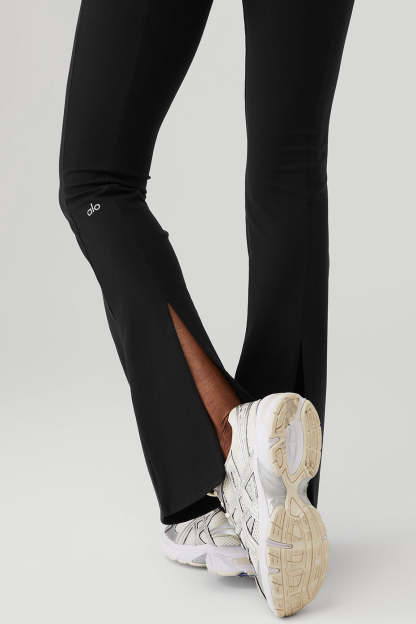 Best. Flares. Ever. The Airbrush High-Waist Kick-Back Legging in sculpting performance Airbrush is sweet from every angle, with a skinny waistband & elevated front seams. A flared leg with a split back adds extra ventilation (and is great for showing sneakers!), for a forward look that pairs perfectly with a high-neck bra top.