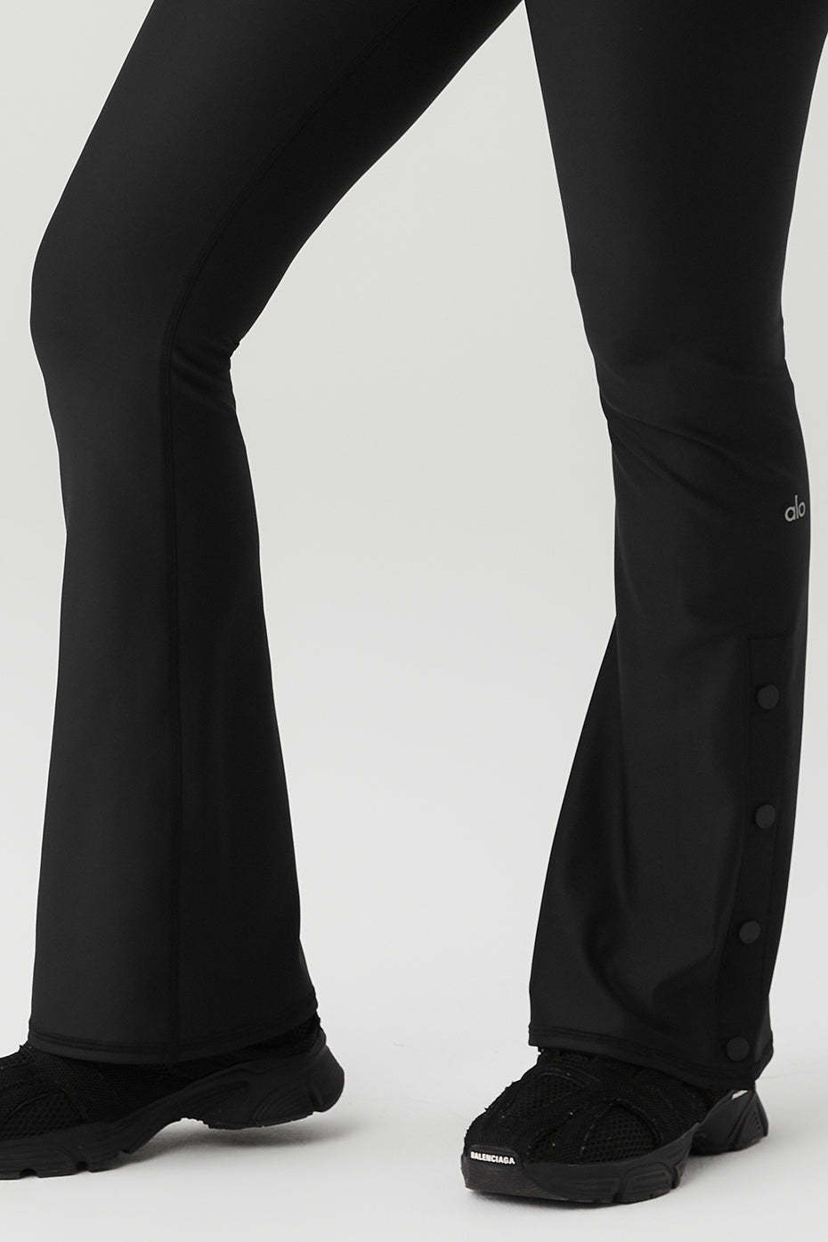 It*s our sleekest signature fabric in cut of the moment 〞 bootcut! The Airlift High-Waist Game Changer Legging has landed, with forward flares, a high waist and snaps down the sides. Effortlessly tie your studio-to-street look together by pairing it with a cropped coverup.