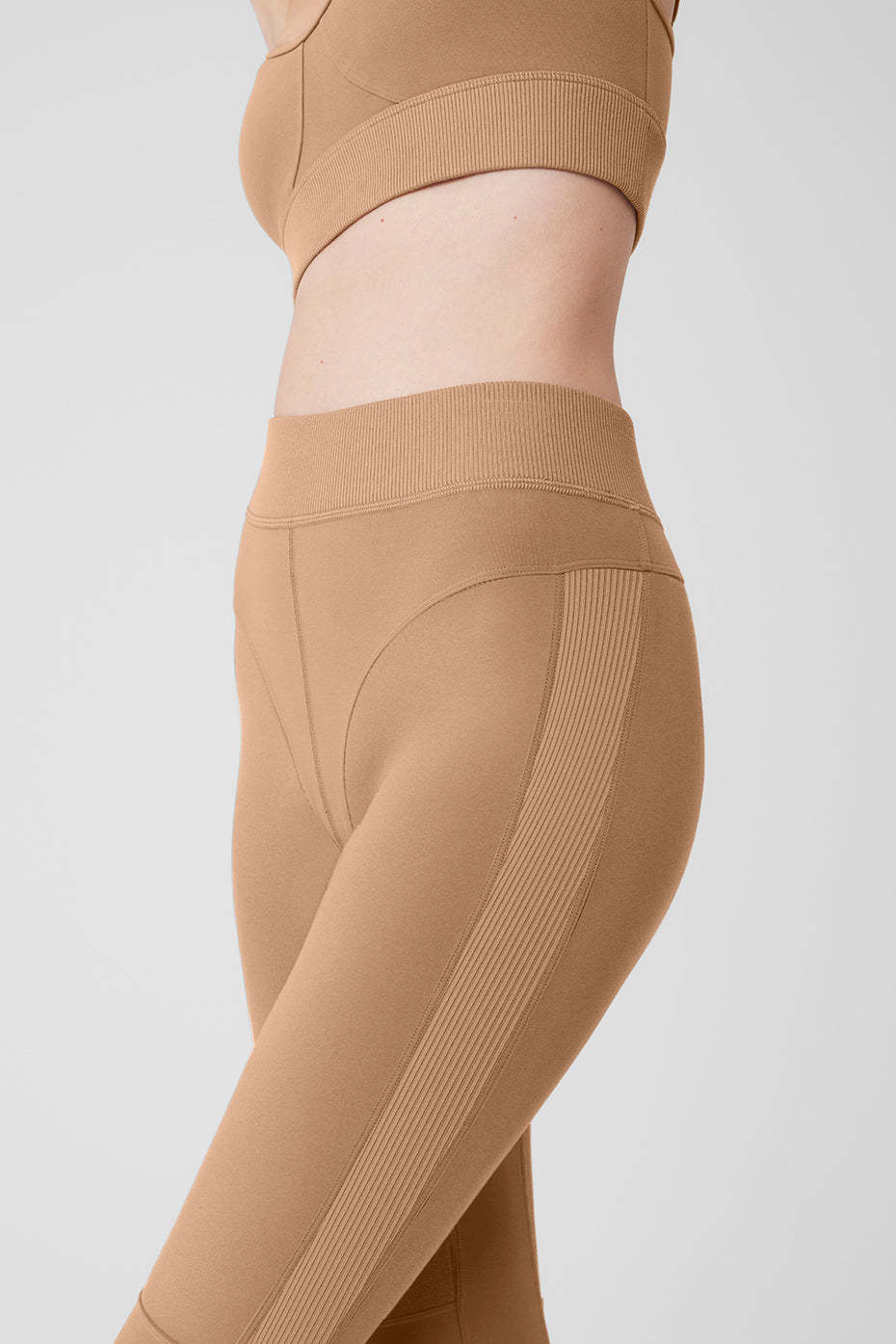 A subtle nod to the *80s, these leggings have coolly contrasting ribbed panels and bikini bottom seaming. We love the high-rise, full-length fit and the stretchy elastic waistband with a tonal athelo logo. And they*re done in athelosoft〞our coziest fabric with a buttery feel and a brushed finish. Complete the look with the matching athelosoft Head Start Bra.